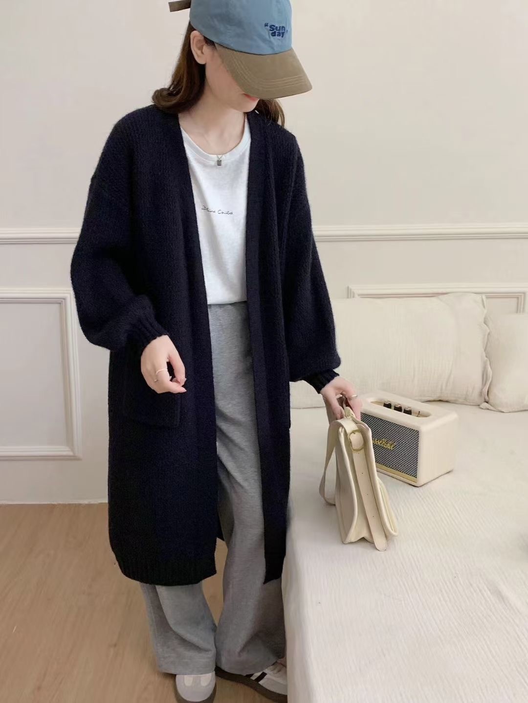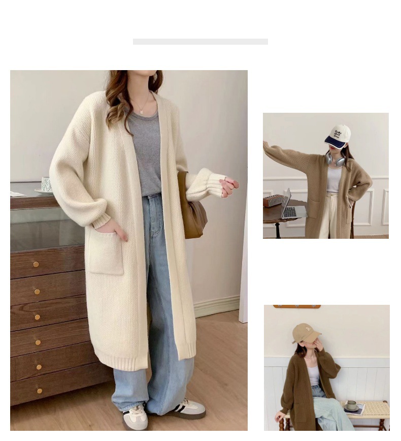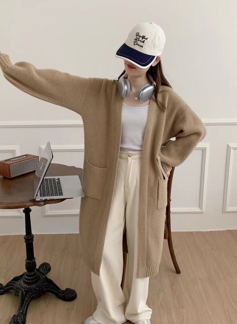 한국 스타일 게으른 스타일 긴 무릎 니트 카디건 여성 2024 새로운 가을과 겨울 느슨한 슬리밍 솔리드 컬러 스웨터스토어 가기