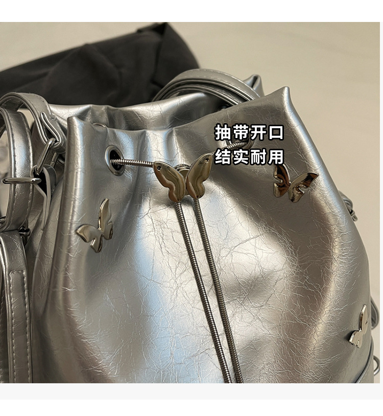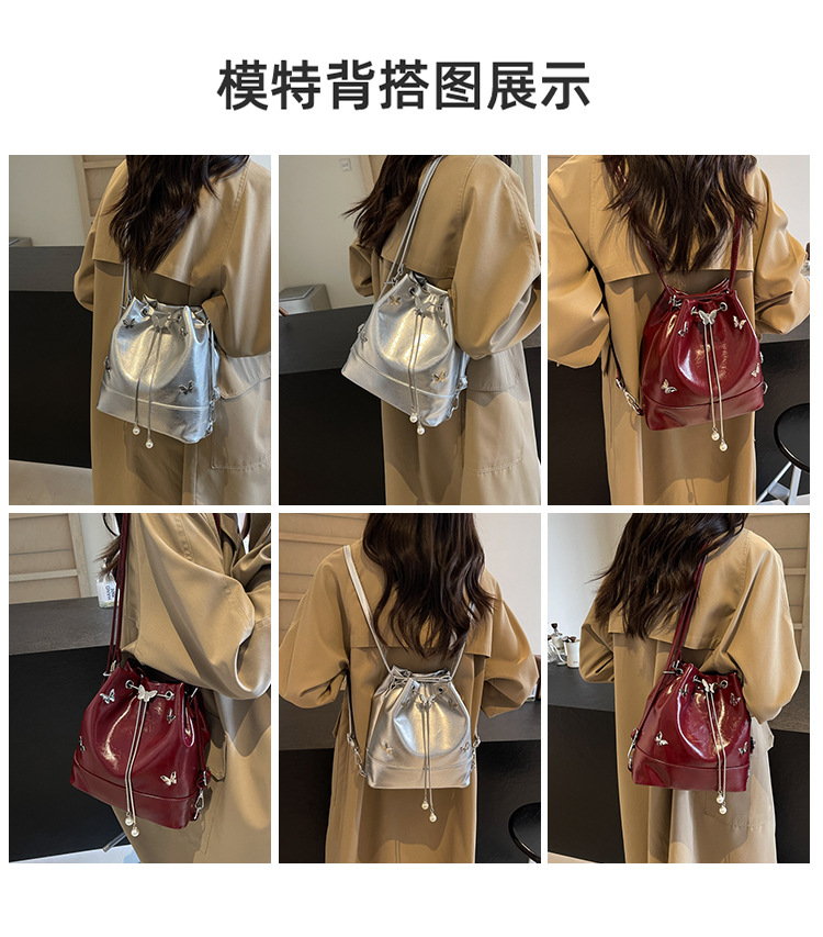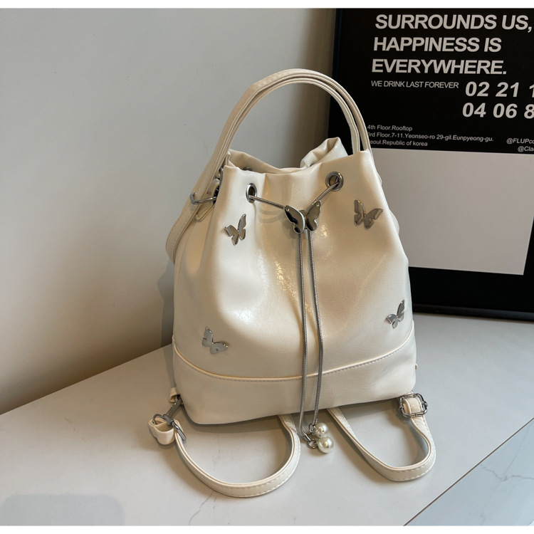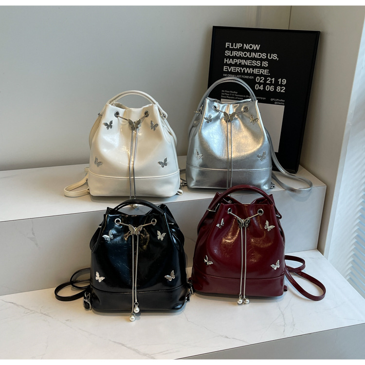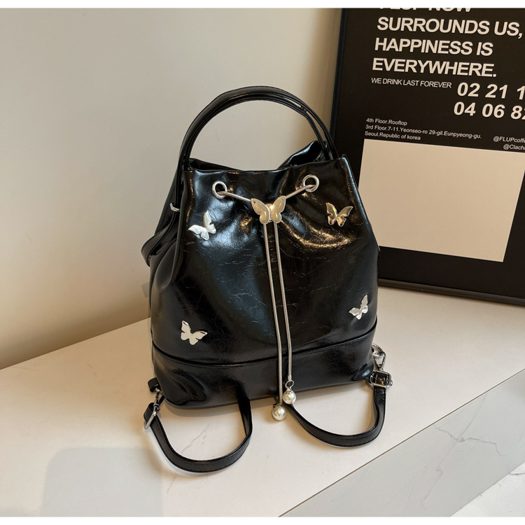 틈새 디자인 드로스트링 버킷 백 2024 새로운 패션 나비 올 매치 숄더 백 여성 대용량 배낭