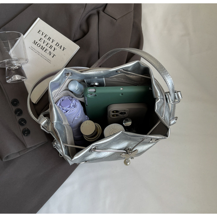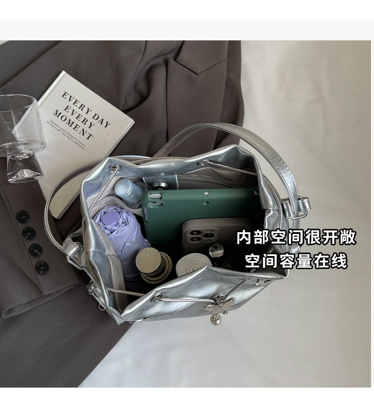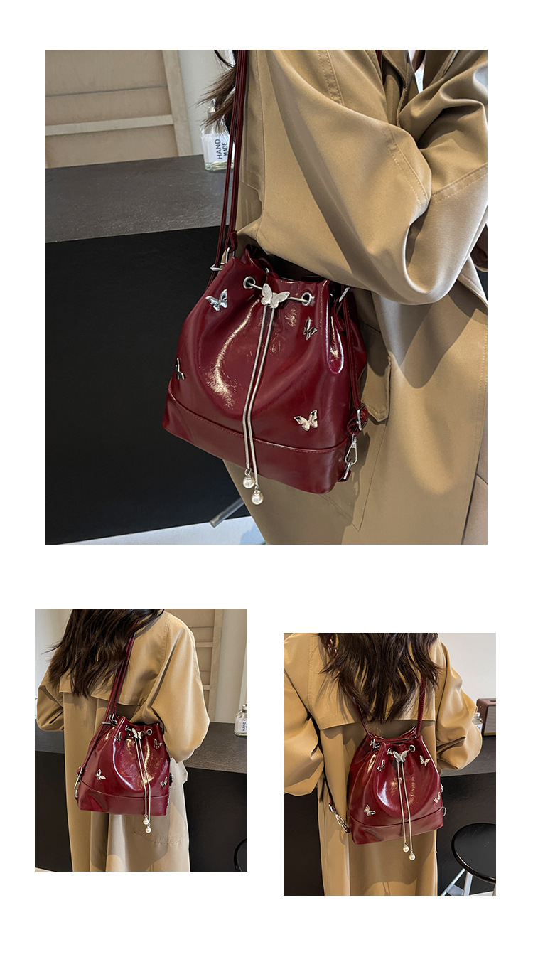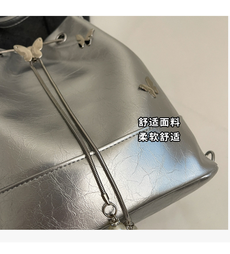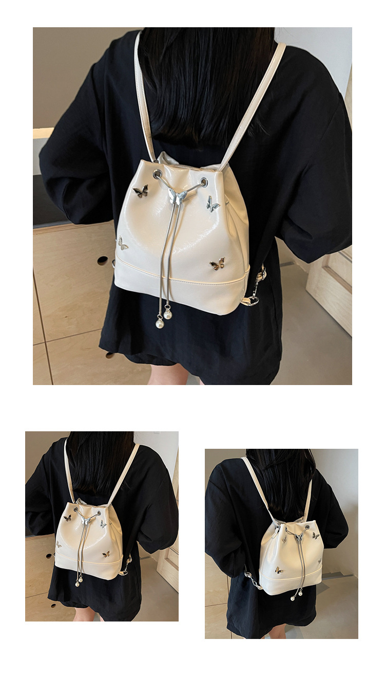 틈새 디자인 드로스트링 버킷 백 2024 새로운 패션 나비 올 매치 숄더 백 여성 대용량 배낭