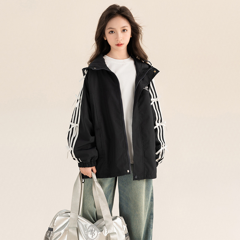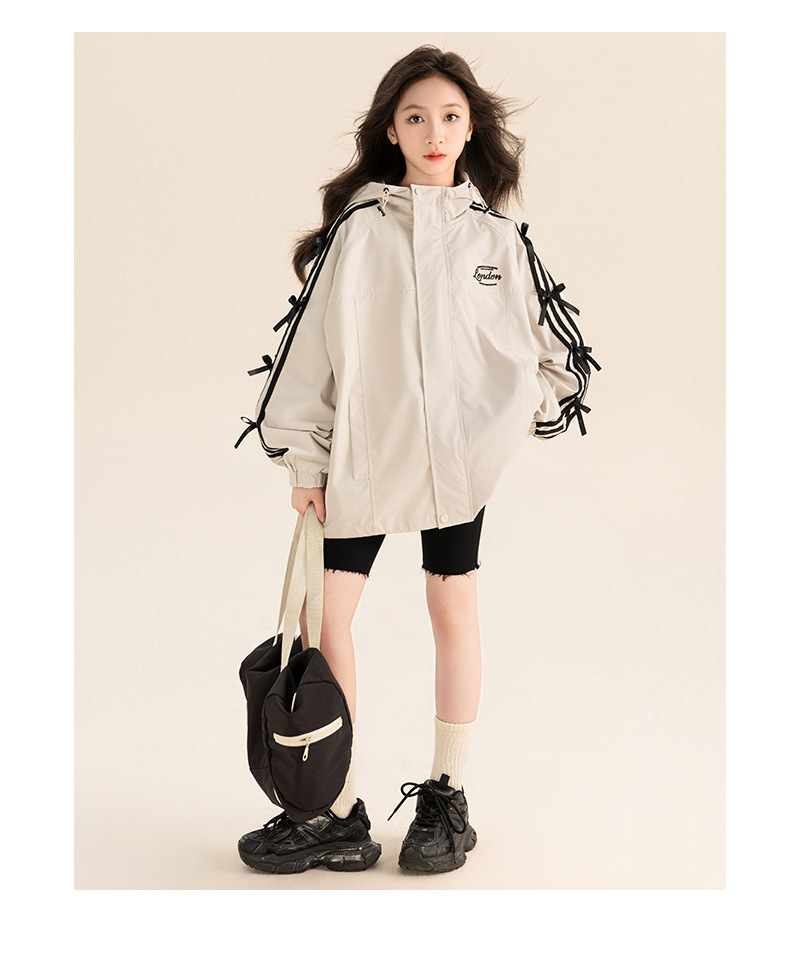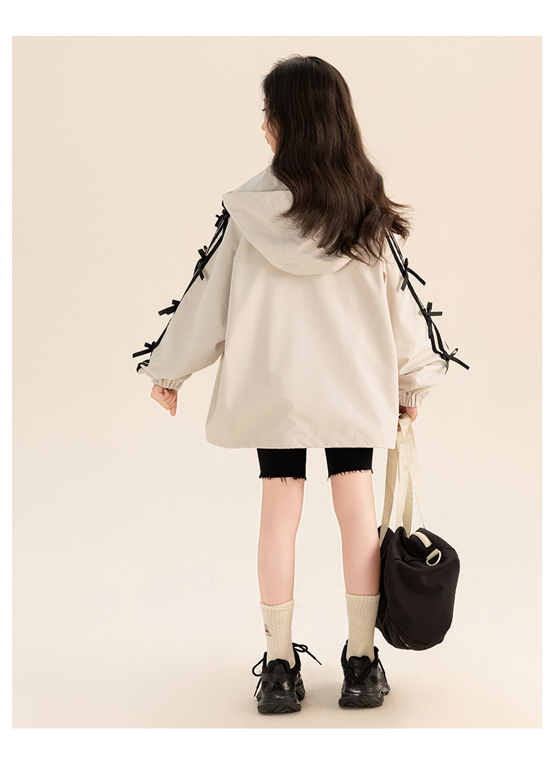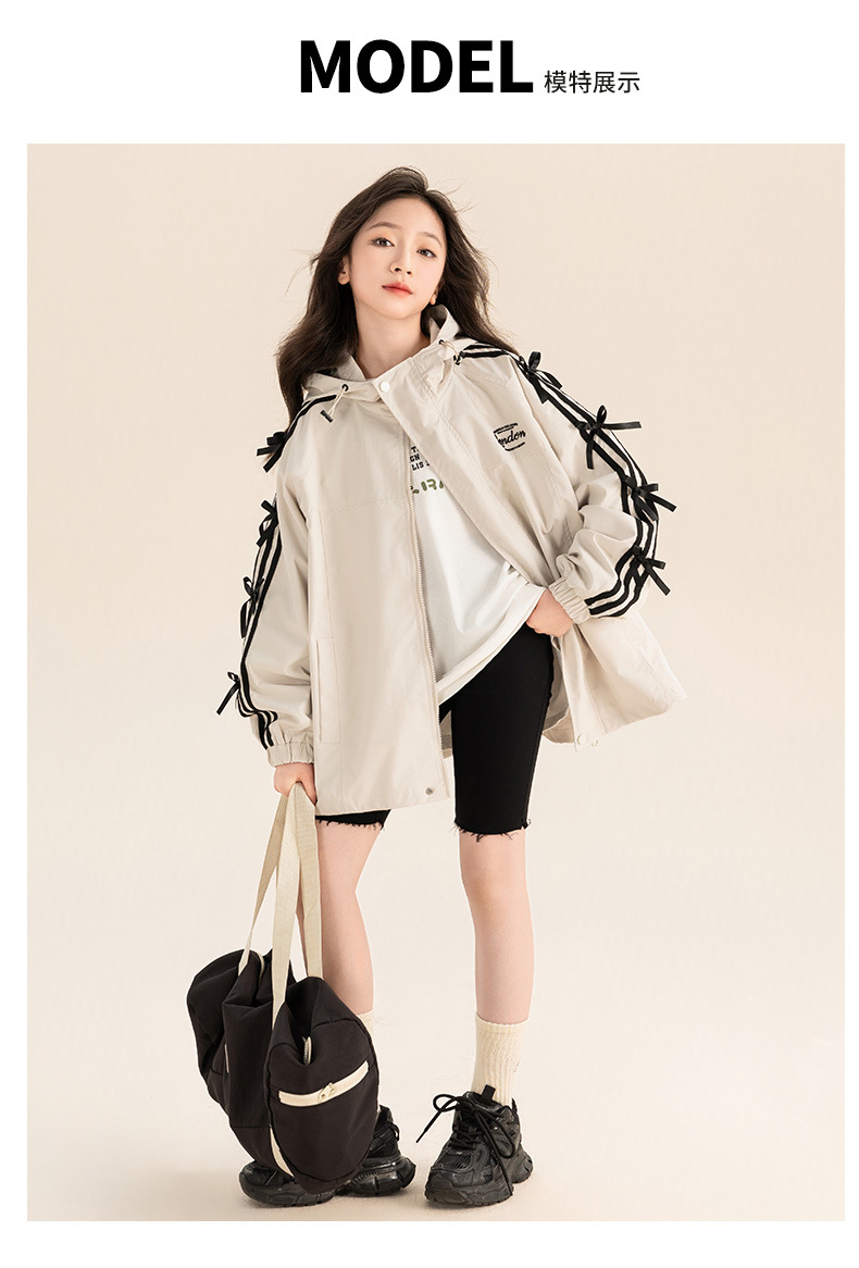 여자 봄, 가을 재킷 새로운 캐주얼 탑 큰 어린이 여자 유행 후드 재킷 보우 지퍼 셔츠스토어 가기