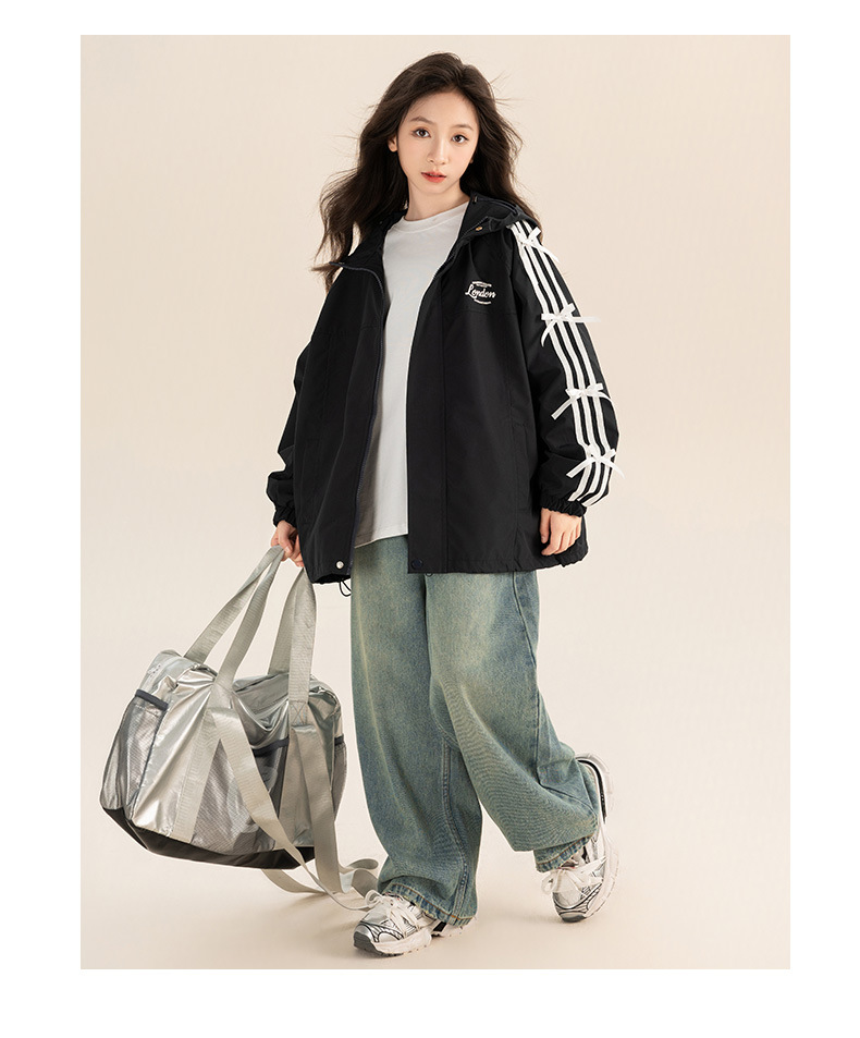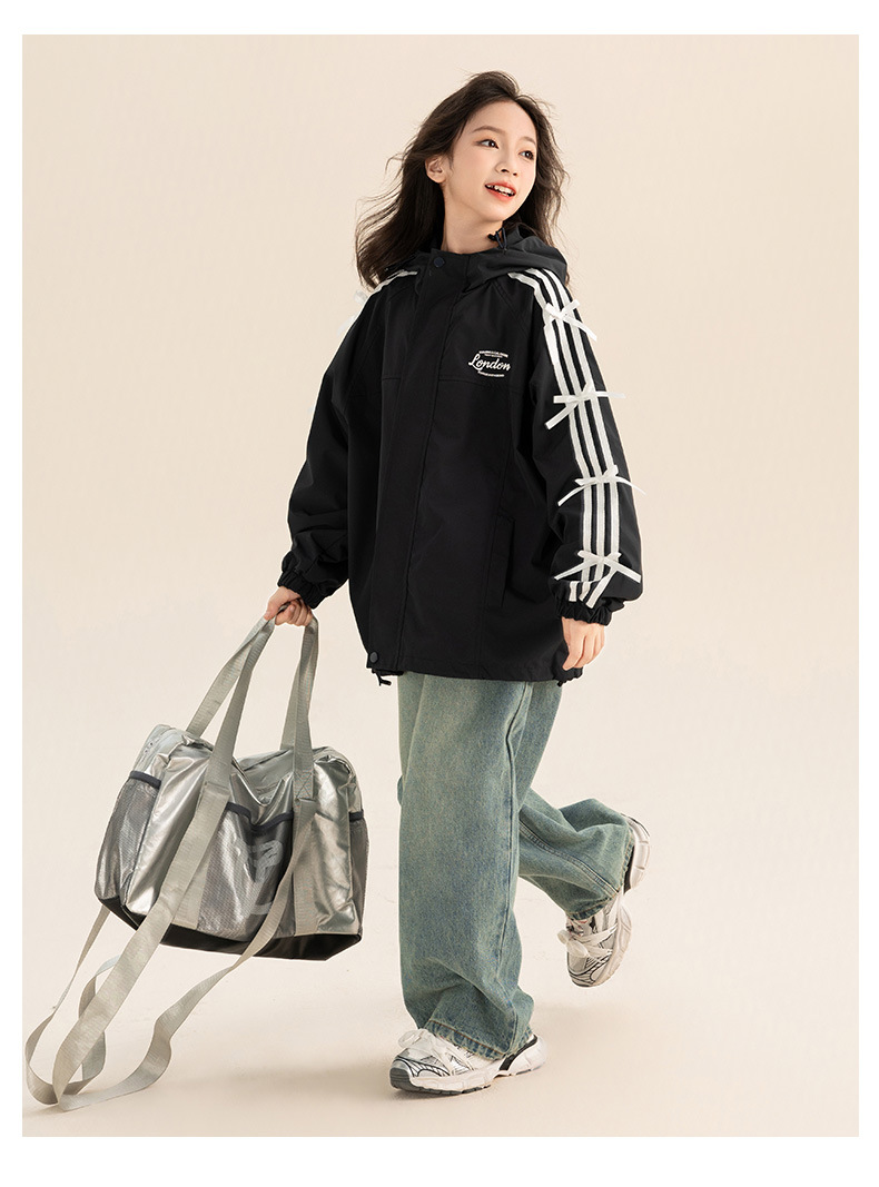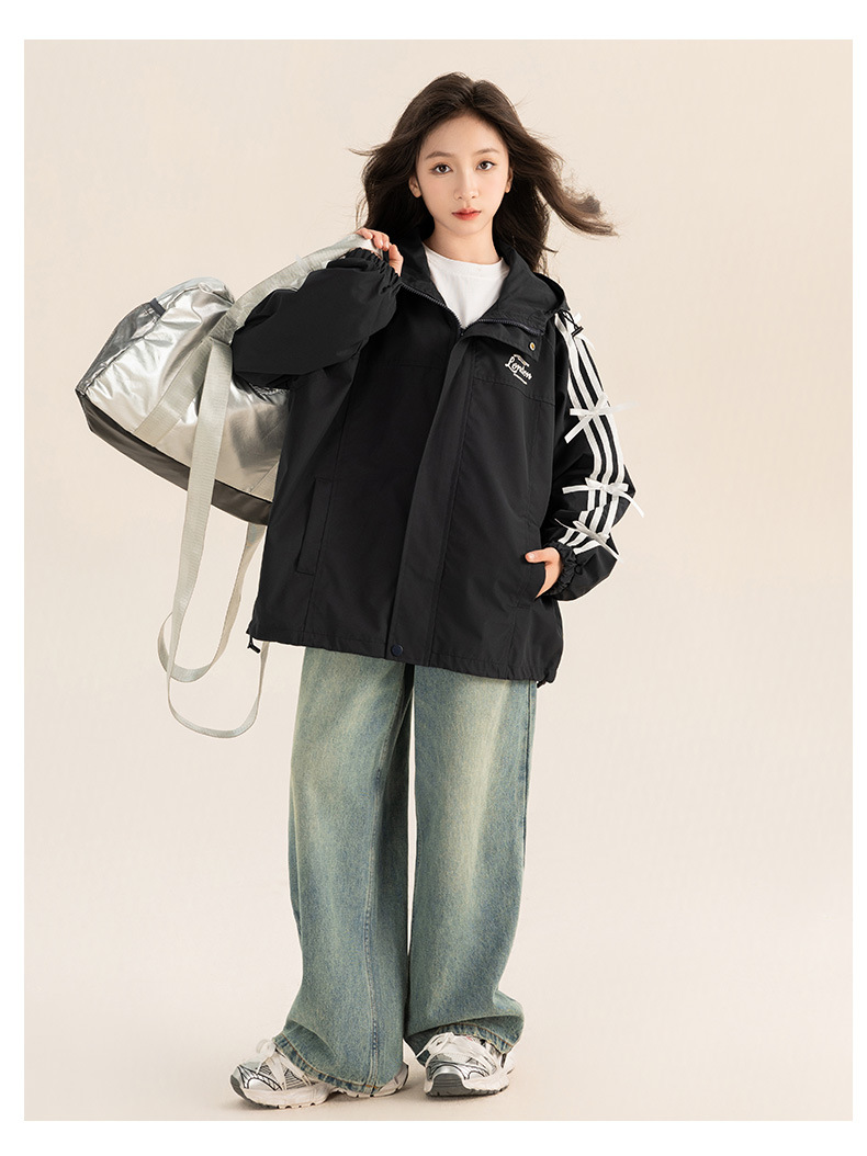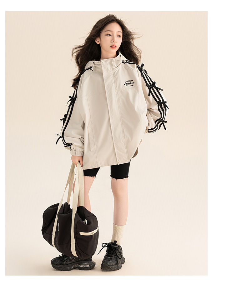 여자 봄, 가을 재킷 새로운 캐주얼 탑 큰 어린이 여자 유행 후드 재킷 보우 지퍼 셔츠스토어 가기