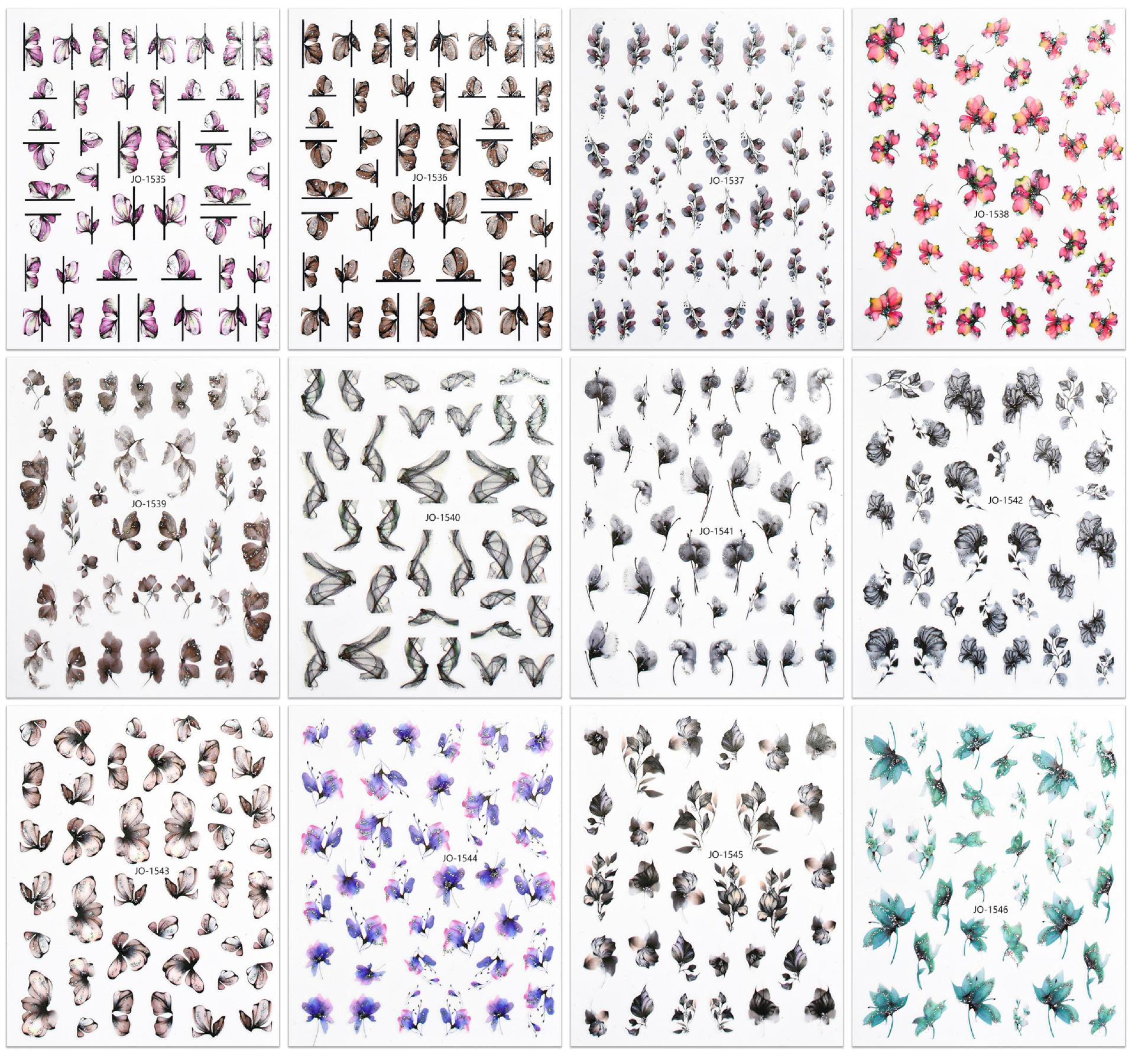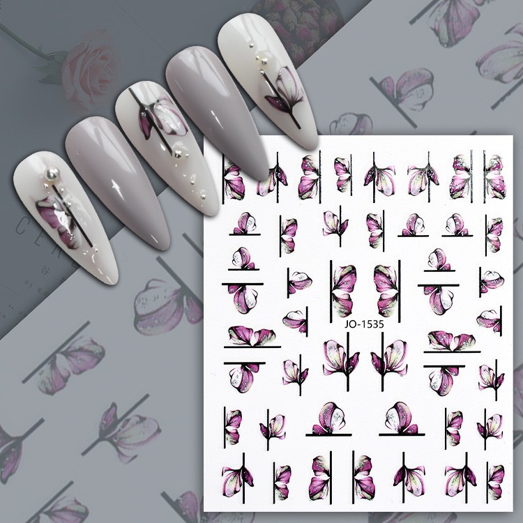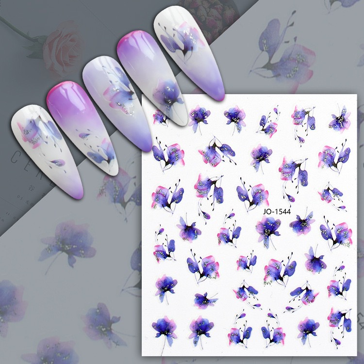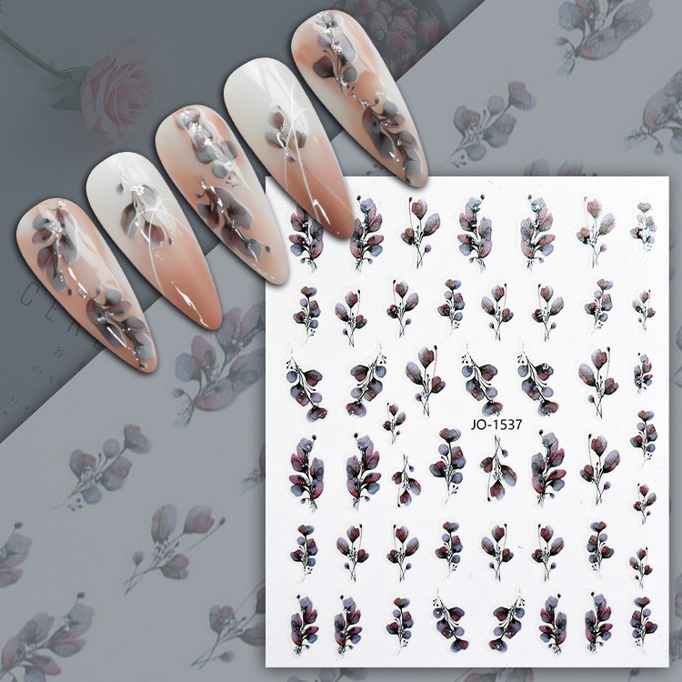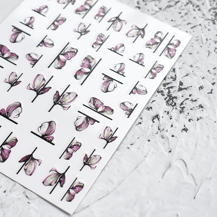 네일 아트 접착 스티커 중국 스타일 잉크 꽃 시리즈 네일 장식 잉크 실버 파우더 꽃 패턴 네일 스티커스토어 가기