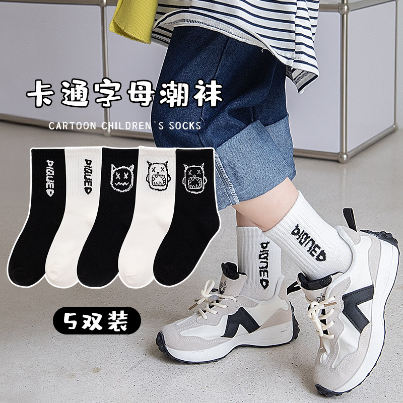 남학생과 여학생을위한 어린이 양말 봄과 가을 면화 양말 중 · 빅 키즈 유행 남자 봄과 가을 농구 중간 배럴 겨울 스포츠 양말