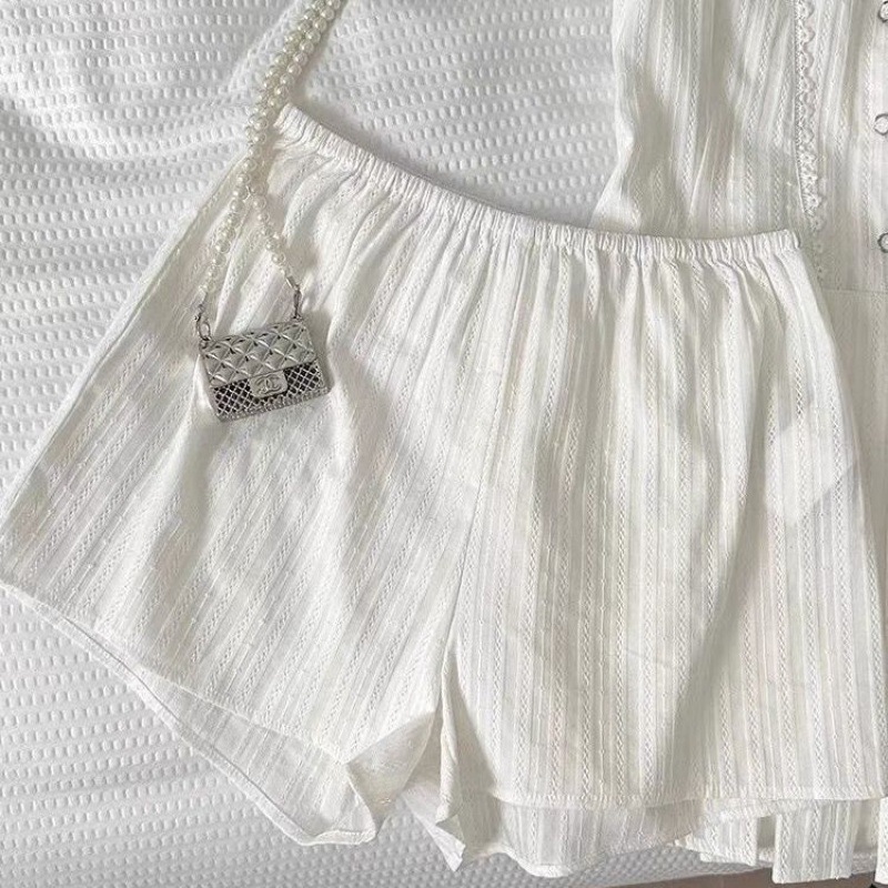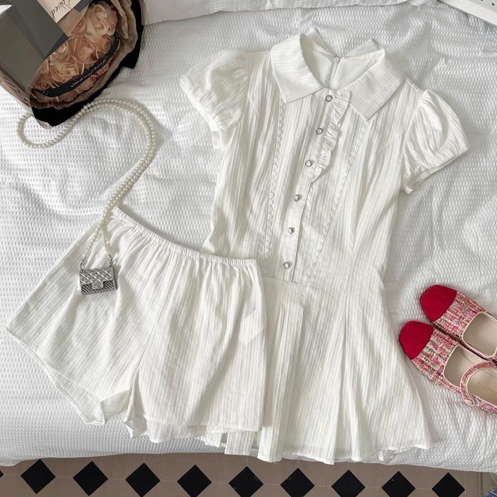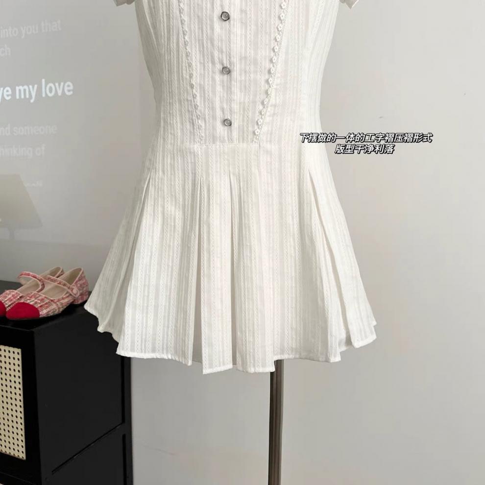 프랑스 원피스 여름 새로운 틈새 디자인 세트 달콤하고 매운 스타일 화이트 웨이스트 스커트 투피스 세트