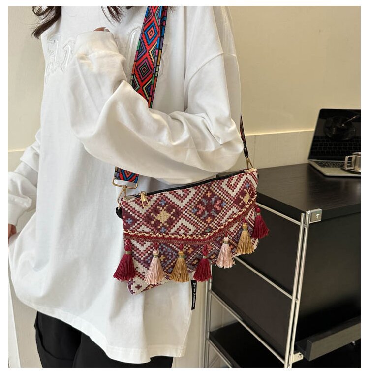 국경 간 여성 가방 크로스 스타일 패션 여성 가방 어깨 가방 한국 민족 스타일 술 크로스 바디 작은 가방 여성