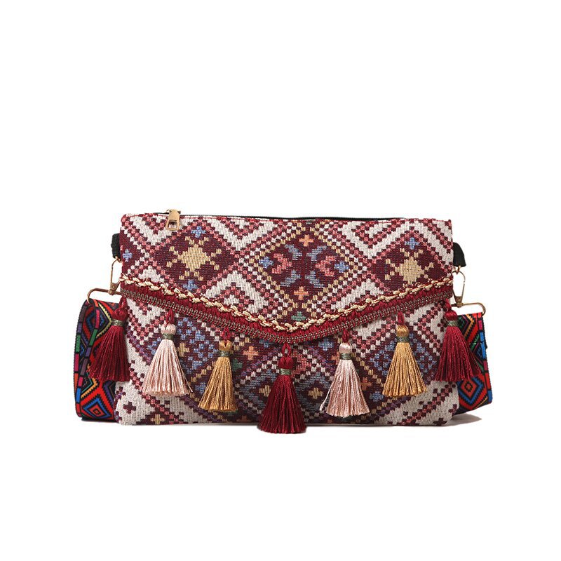 국경 간 여성 가방 크로스 스타일 패션 여성 가방 어깨 가방 한국 민족 스타일 술 크로스 바디 작은 가방 여성스토어 가기