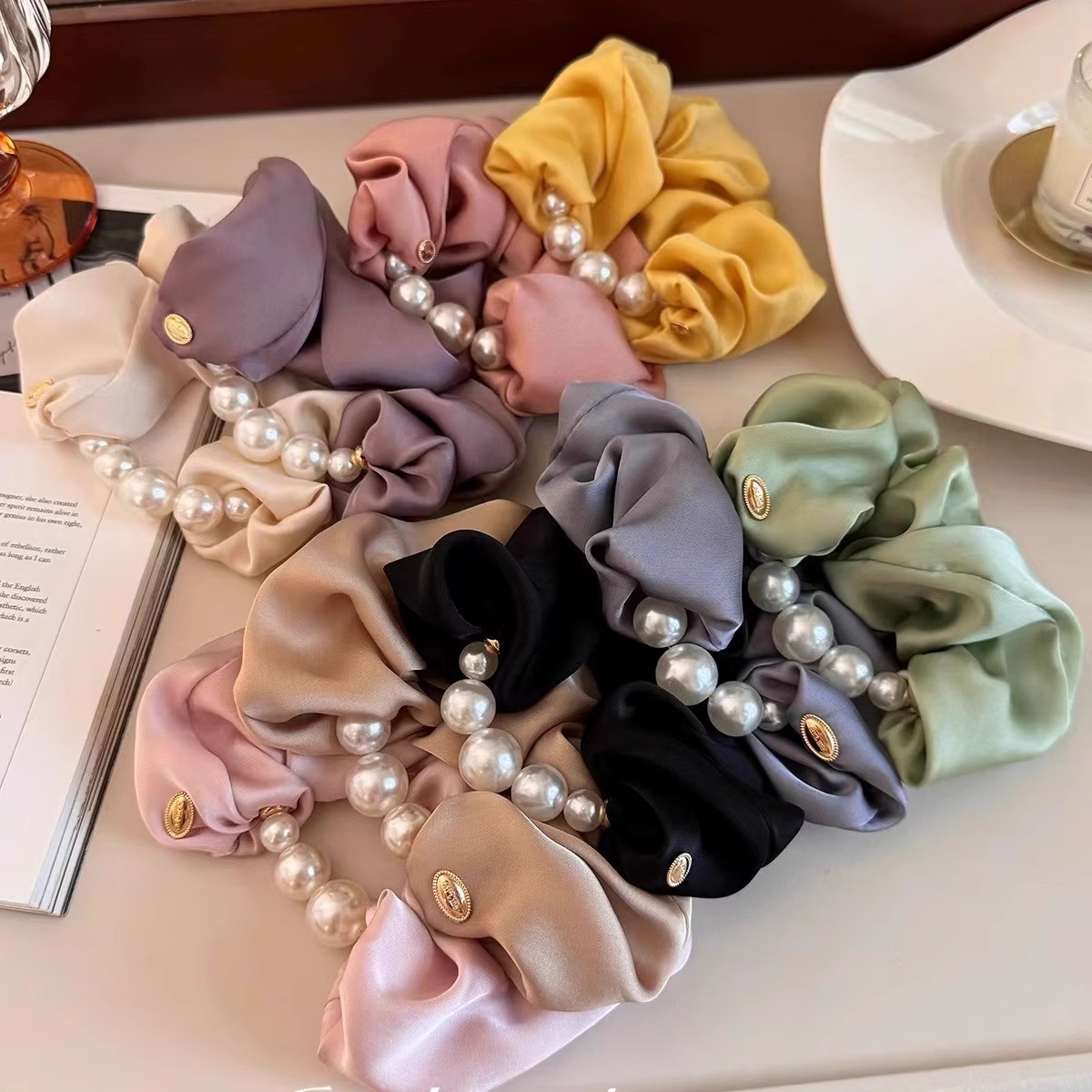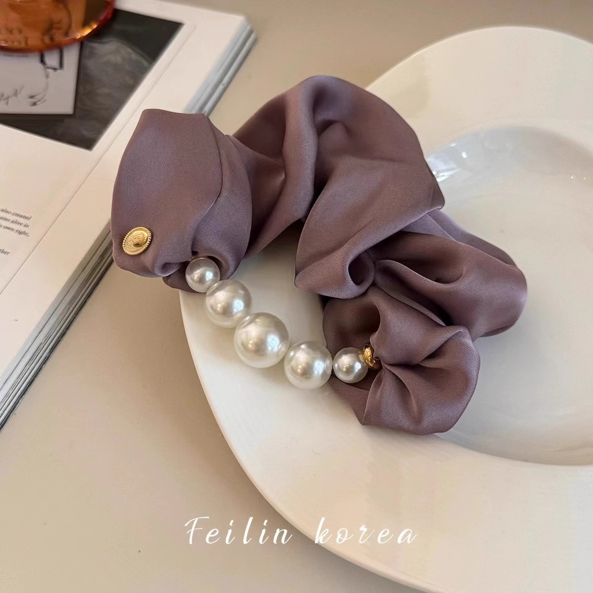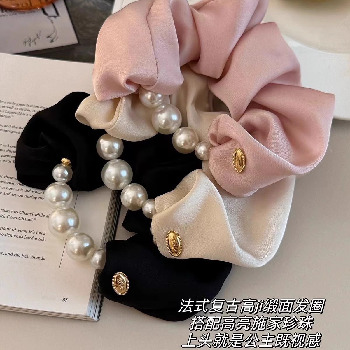 진주 머리 로프 2024 새로운 하이 엔드 헤어 밴드 여성 가죽 케이스 높은 탄성 내구성 검은 머리 밴드 헤어 액세서리스토어 가기