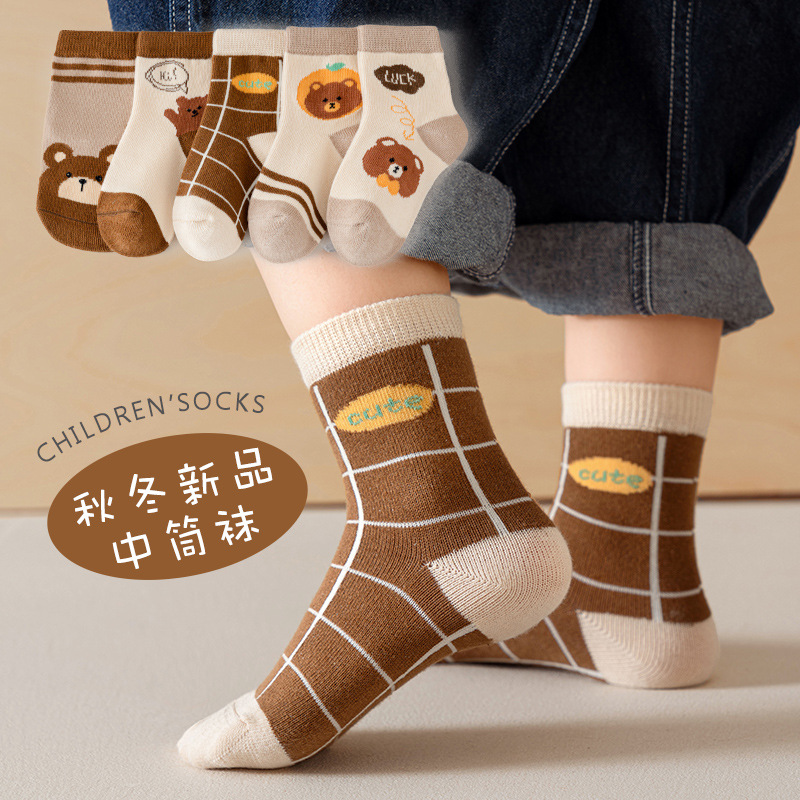 어린이 양말 봄 및 가을 코튼 중간 튜브 양말 소년 중 및 큰 어린이 Osteeless 양말 가을 면화 양말 안티 필 어린이 양말