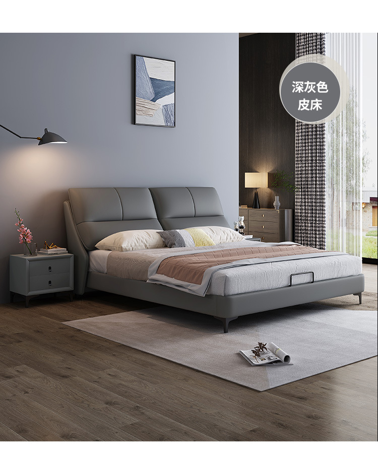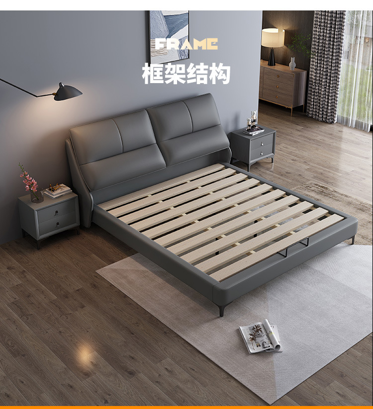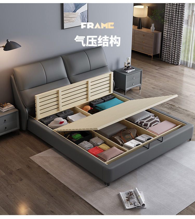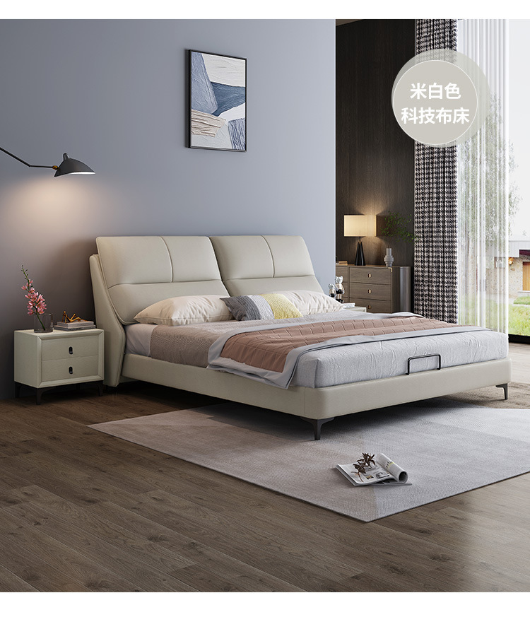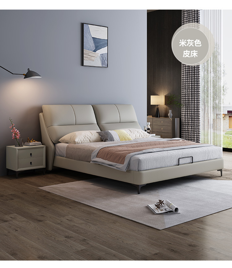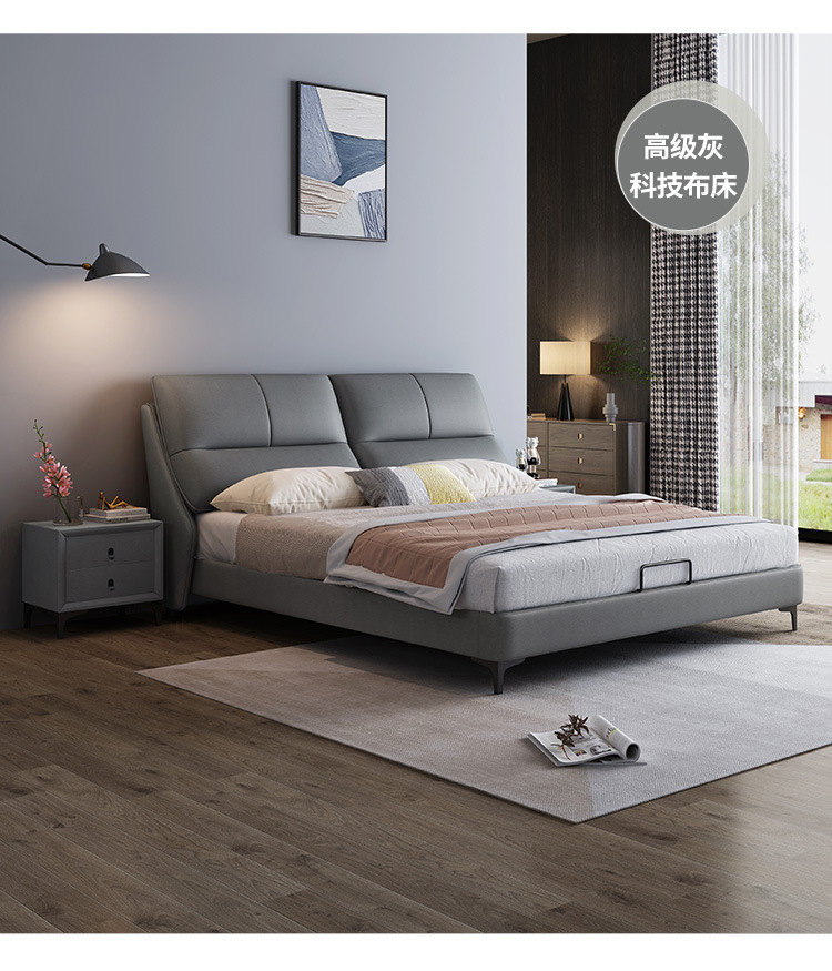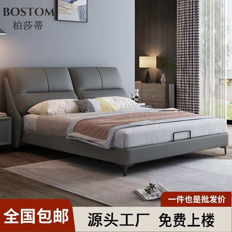 이탈리아 미니멀리스트 침대 조명 럭셔리 현대 소프트 백 1.8 m 더블 퀸 침대 기술 천 마스터 침실 가죽 보관 웨딩 침대스토어 가기