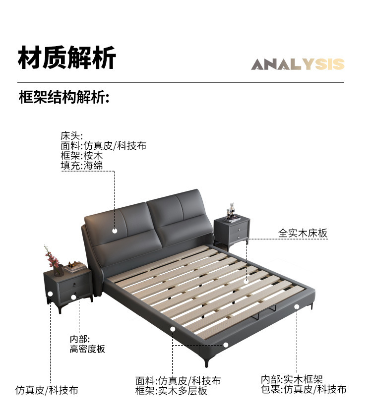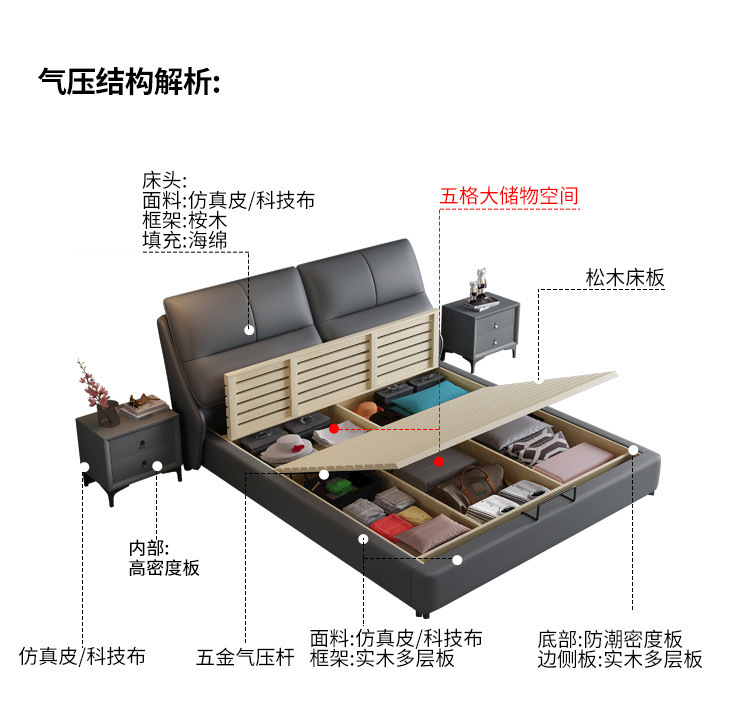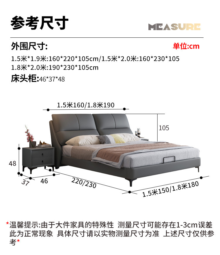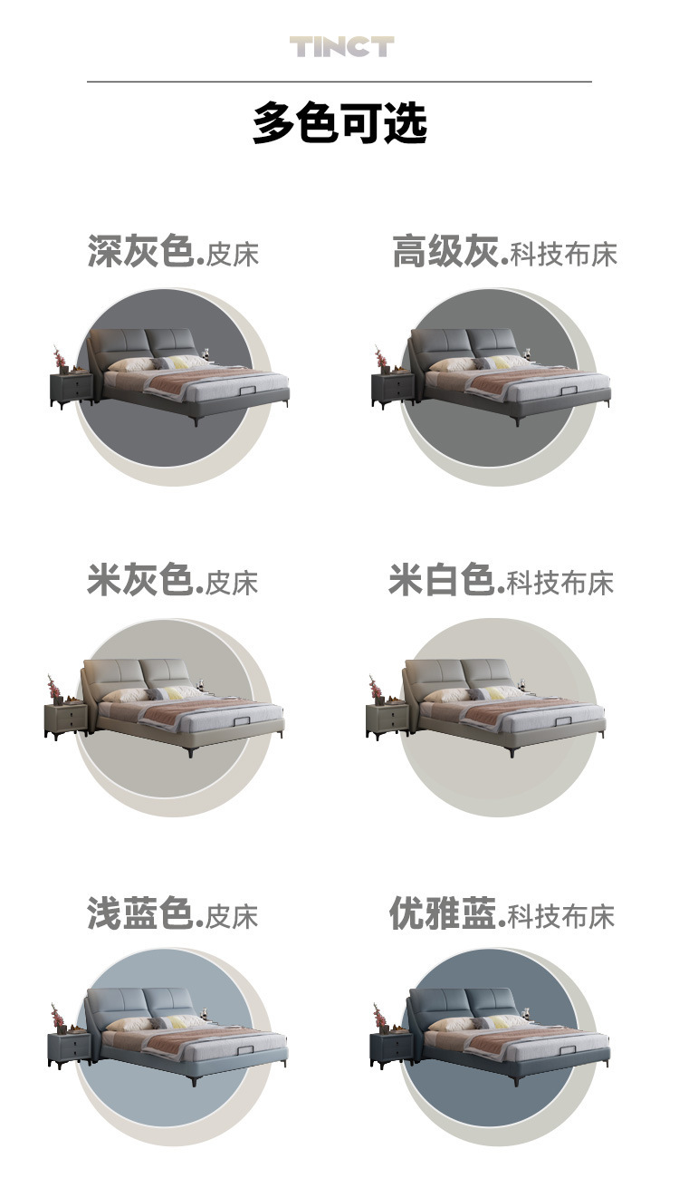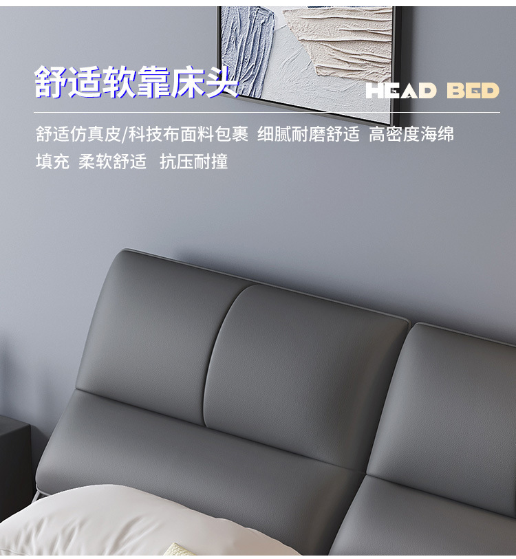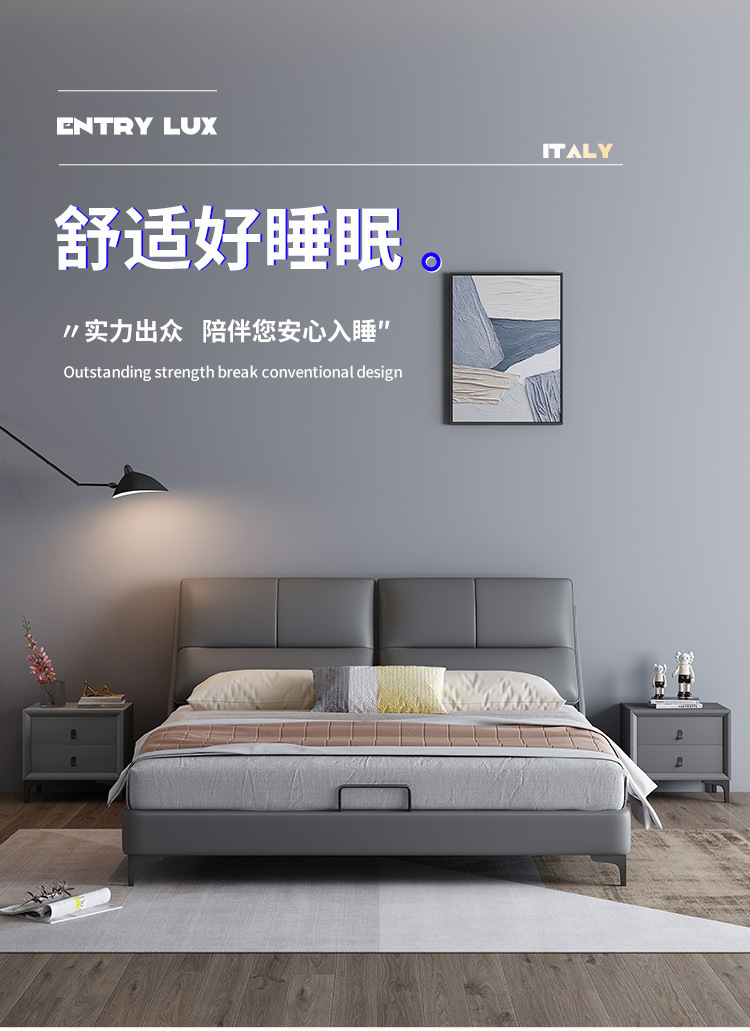 이탈리아 미니멀리스트 침대 조명 럭셔리 현대 소프트 백 1.8 m 더블 퀸 침대 기술 천 마스터 침실 가죽 보관 웨딩 침대스토어 가기