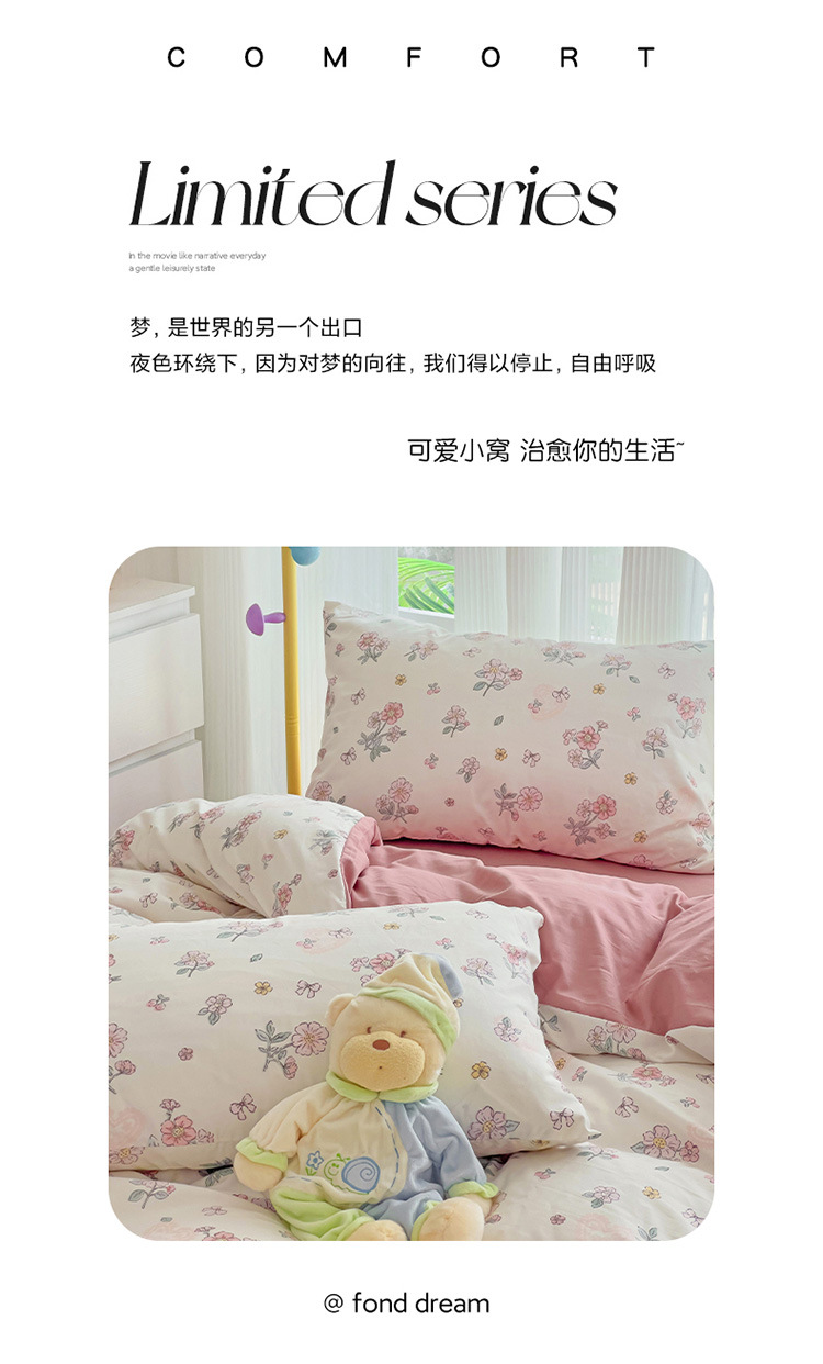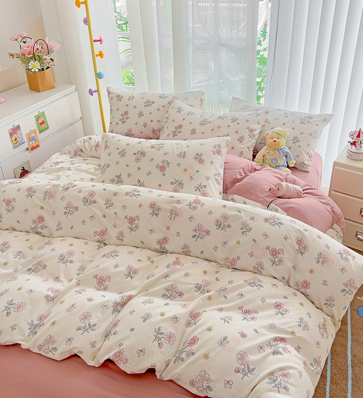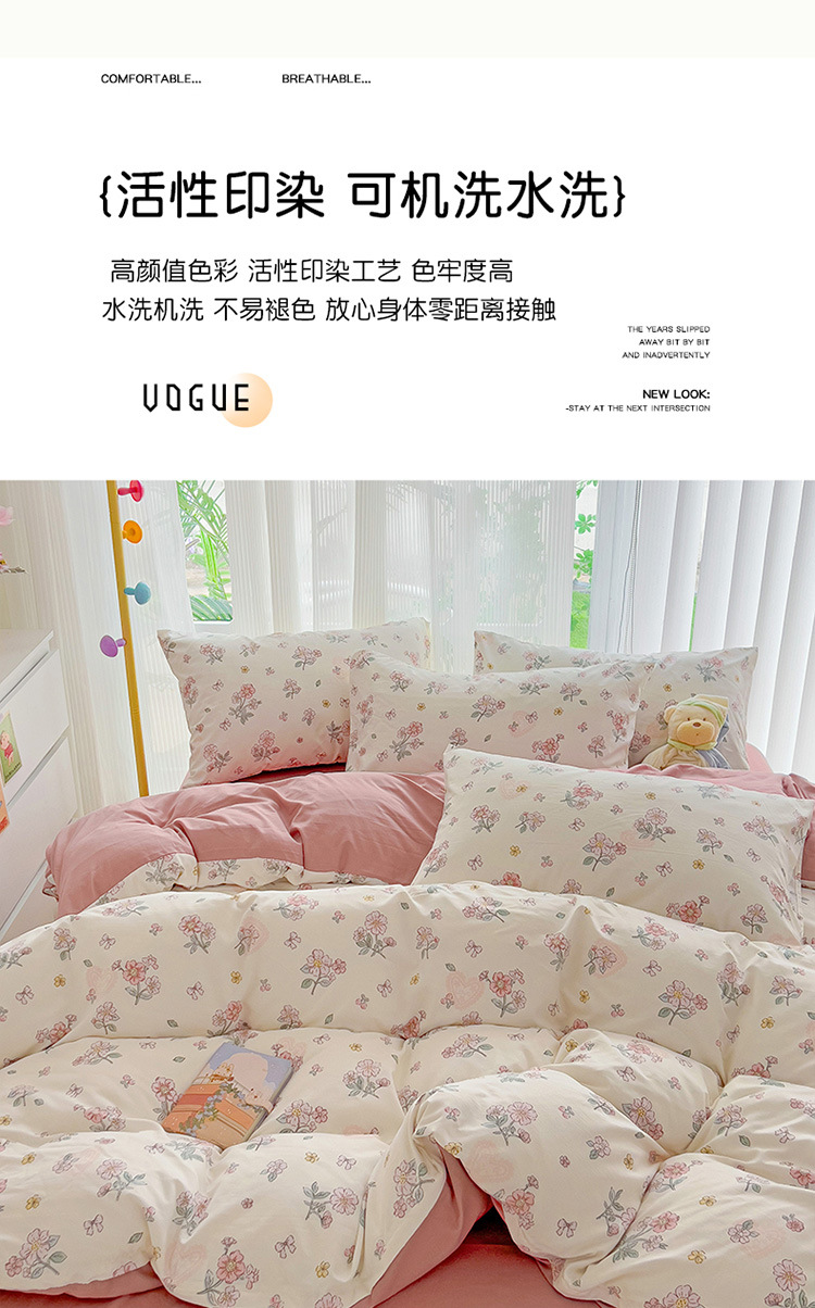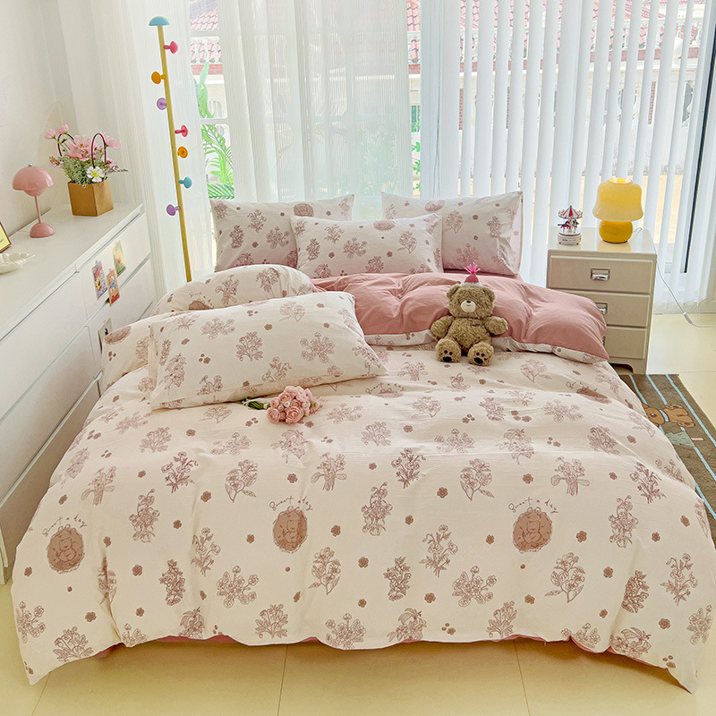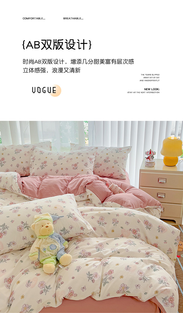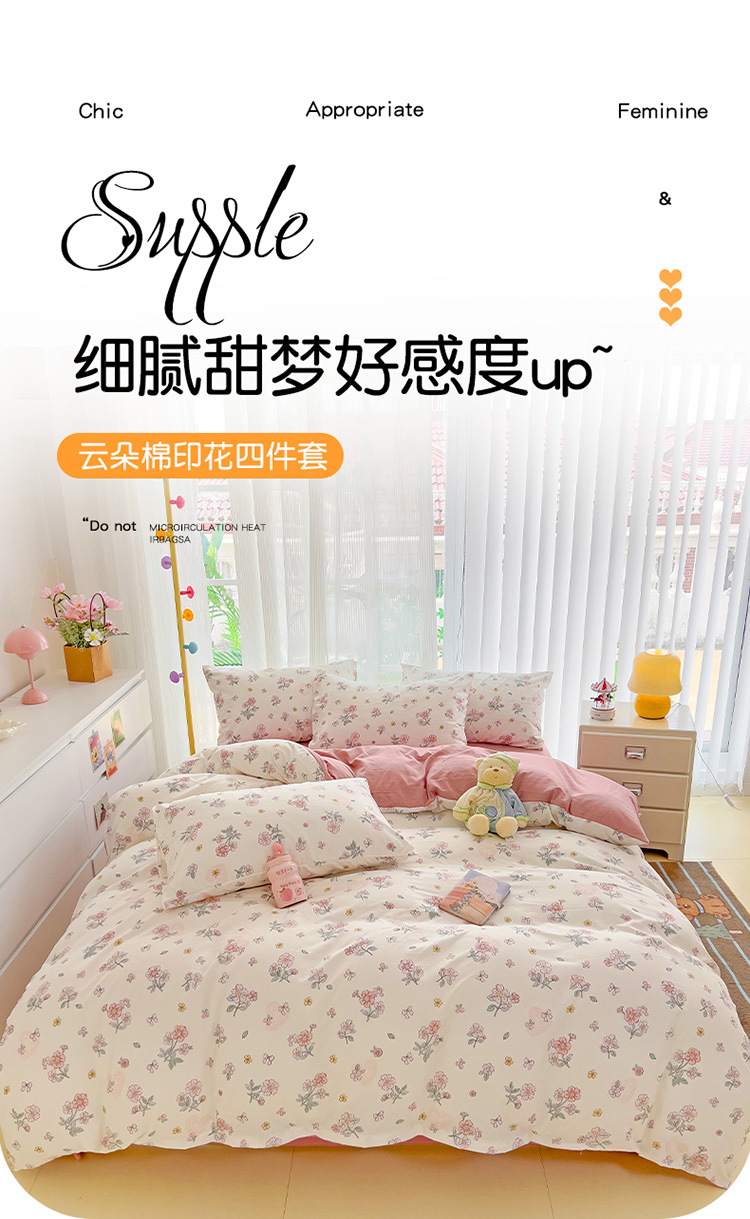 난퉁 홈 섬유 공장 도매 구름 면화 침대 시트 4 종 세트 목회 스타일 퀼트 커버 침대 모자 학생 기숙사 3 종 세트스토어 가기
