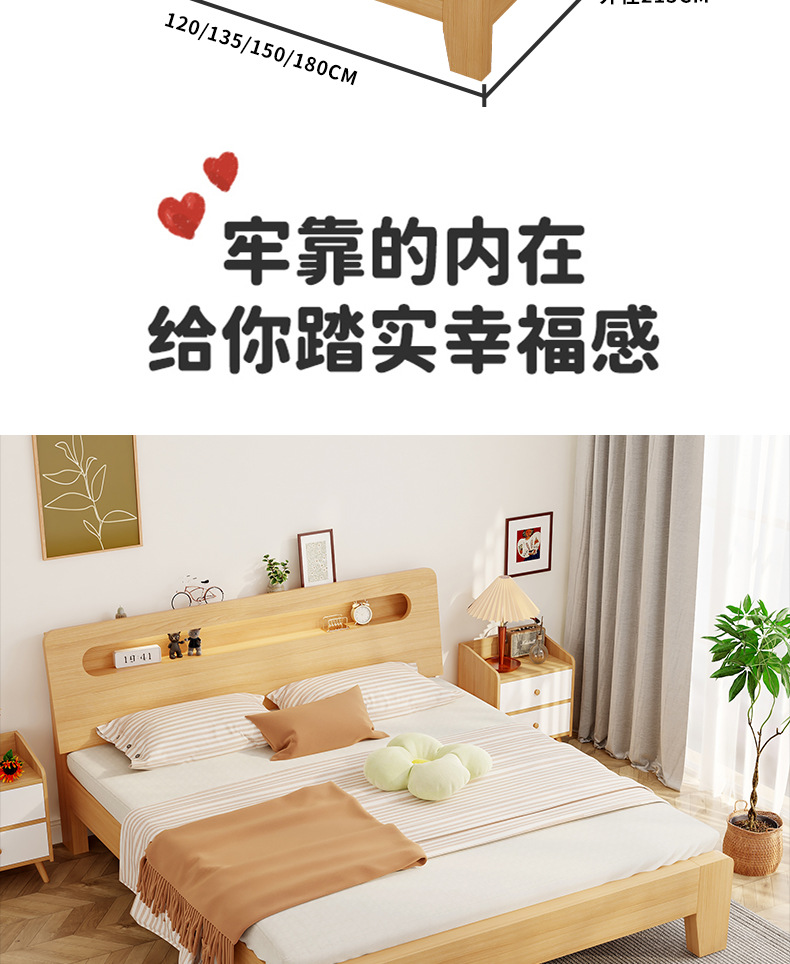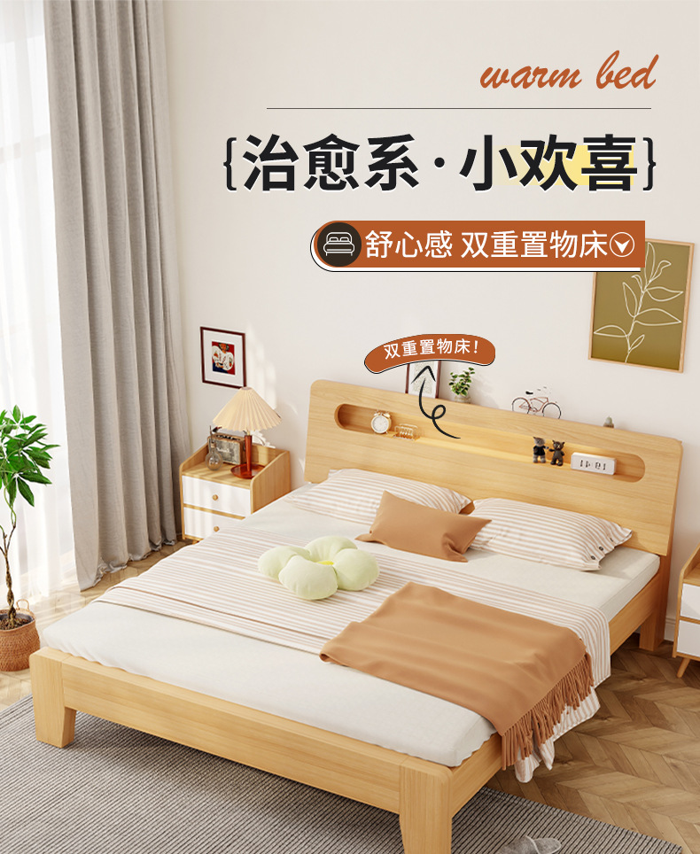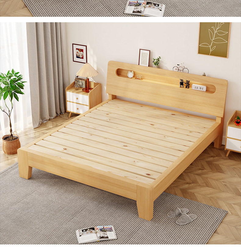 가정용 침실 침대 프레임 1.2m 전체 원목 대형 침대 임대용 소형 가정용 싱글 침대 성인 1.5m 로그 스타일