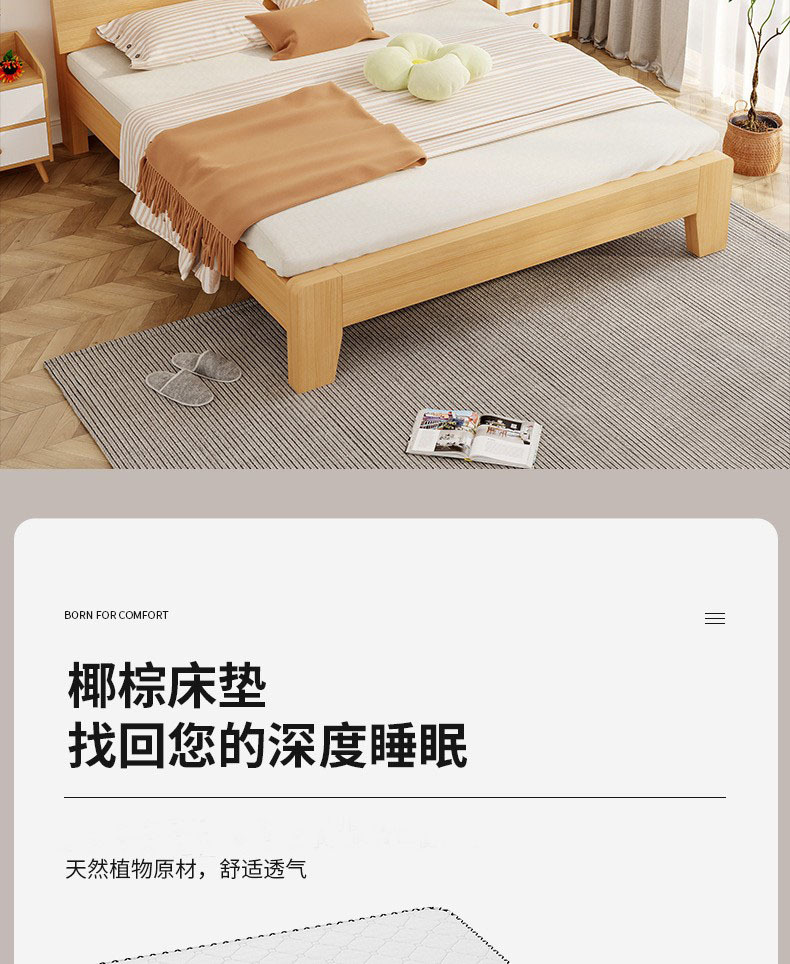 가정용 침실 침대 프레임 1.2m 전체 원목 대형 침대 임대용 소형 가정용 싱글 침대 성인 1.5m 로그 스타일스토어 가기