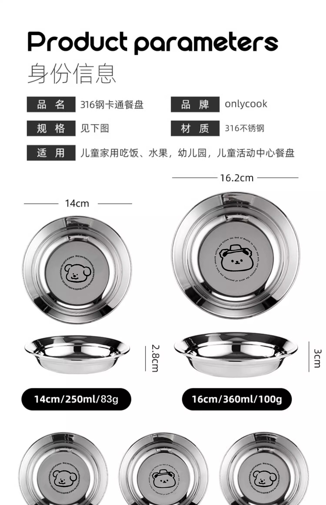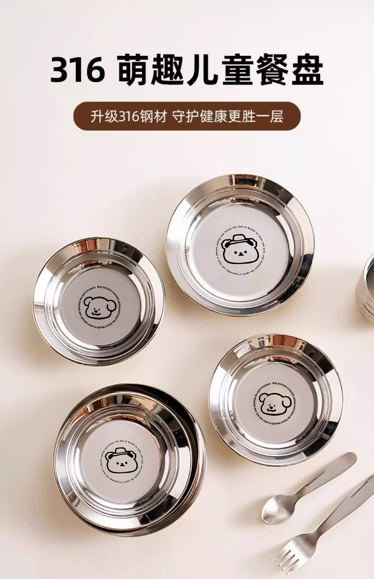 304 스테인리스 접시 어린이 유아용 식판 식품 등급 아기 식기 귀여운 유치원 가정용 식사