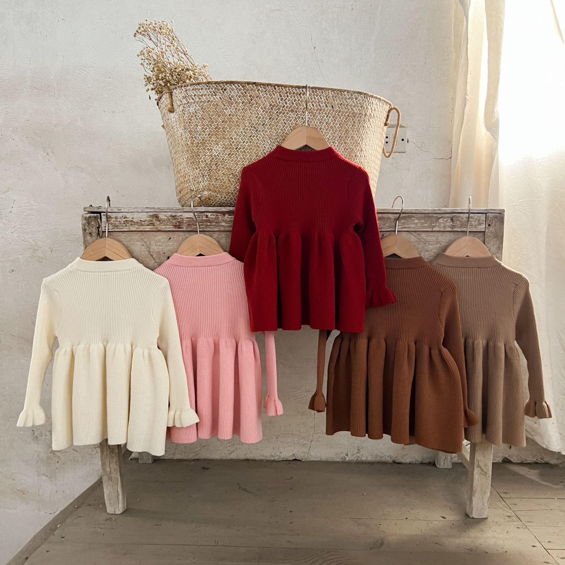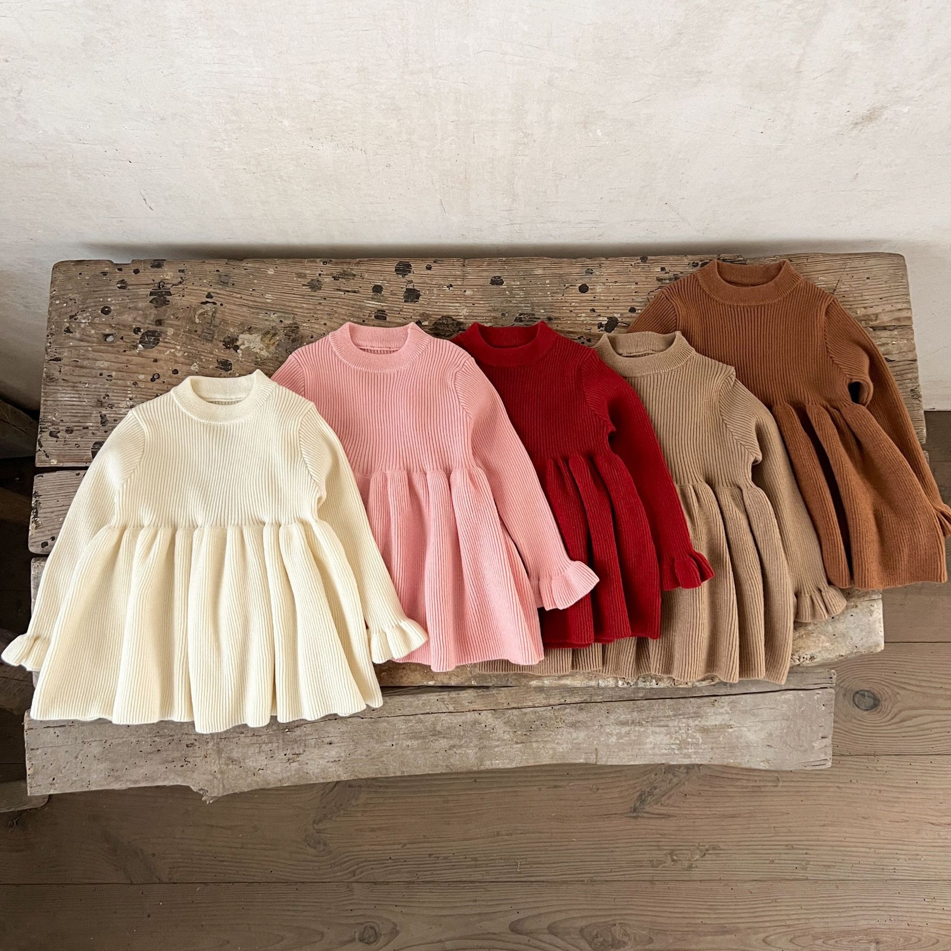 Ins Korean Style Girl's Baby Cotton Horn Cuff 원피스 아기의 봄과 가을 스웨터 원피스스토어 가기