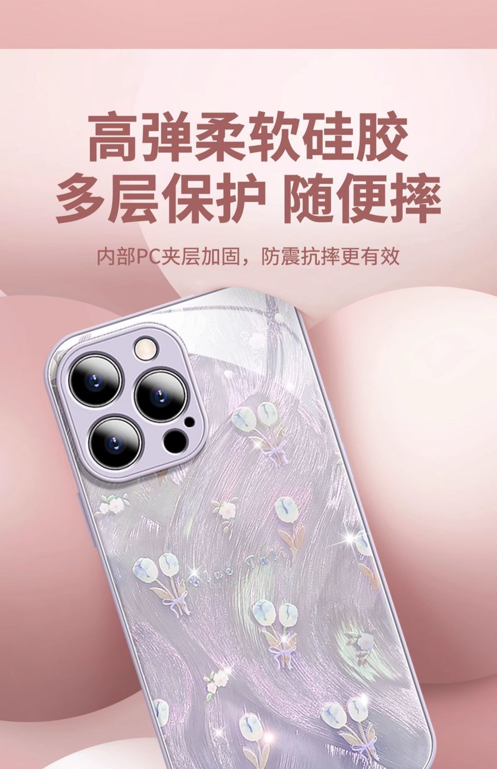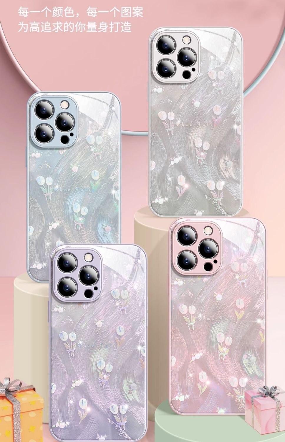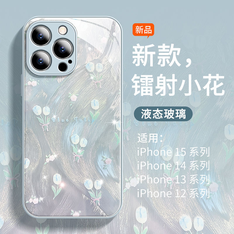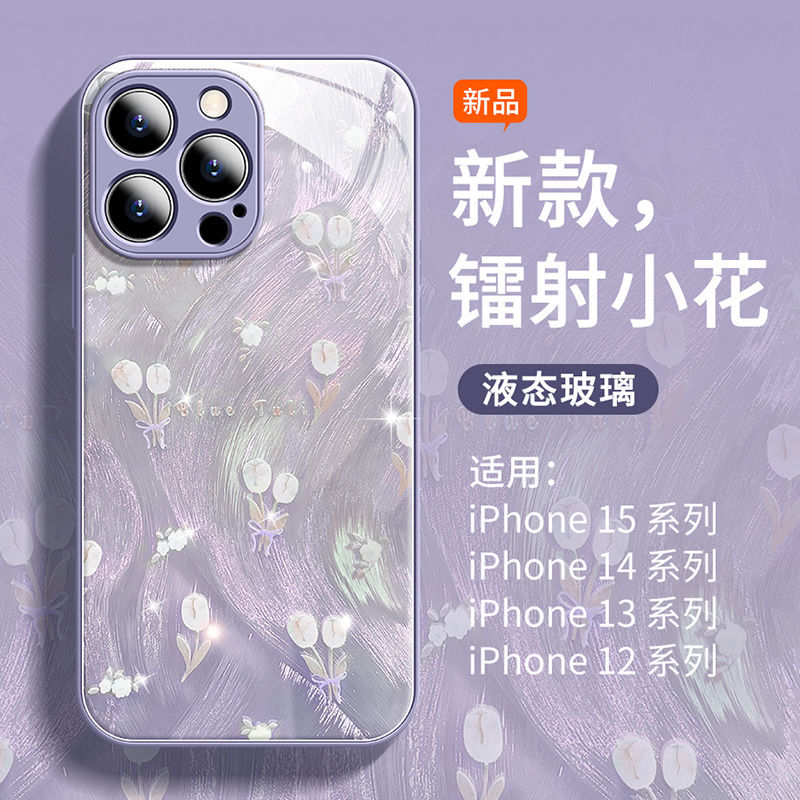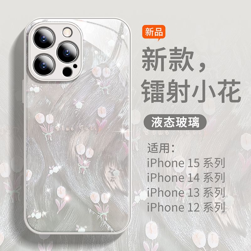 镭射小花苹果15promax手机壳玻璃14全包13蝴蝶结12小众11简约XS/X스토어 가기