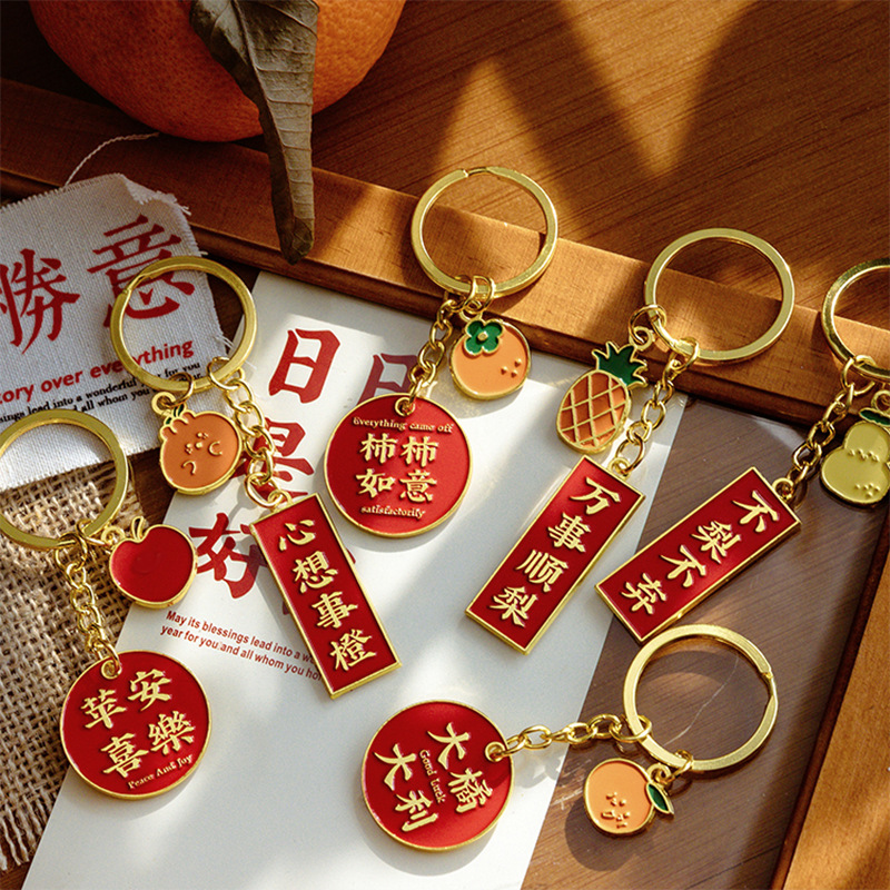 감 루이 과일 플레이트 핑 푸 럭키 카드 키 체인 합금 펜던트 DIY 액세서리 가방 펜던트 선물스토어 가기