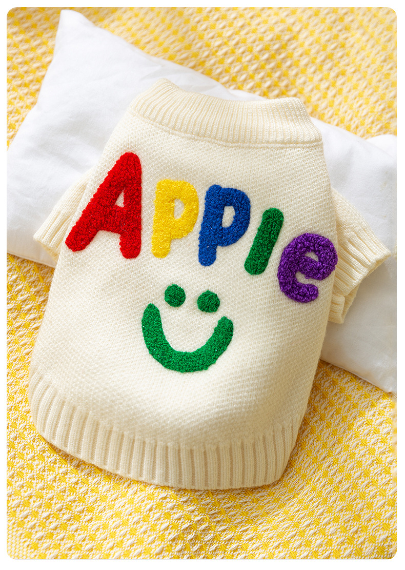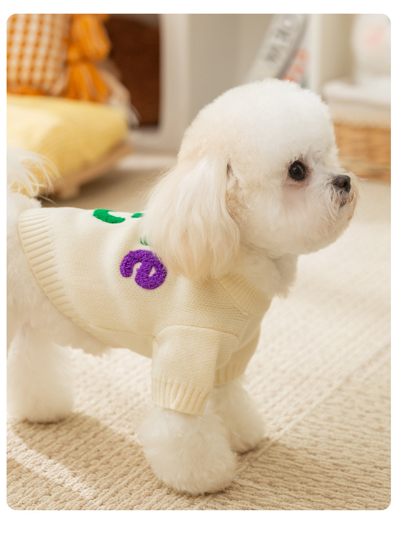 가을 겨울 다채로운 글자가 새겨진 중소형견용 따뜻한 강아지 니트 스웨터, 비숑 테디, 고양이 애완동물 옷