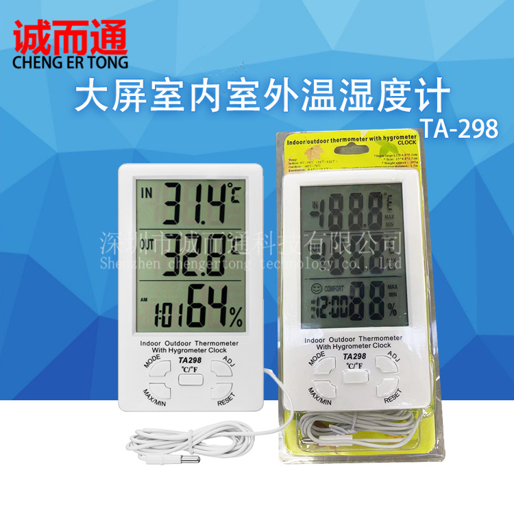 厂家直销 大屏幕数显双温度显示温度表外置探头电子温湿度计TA298undefined