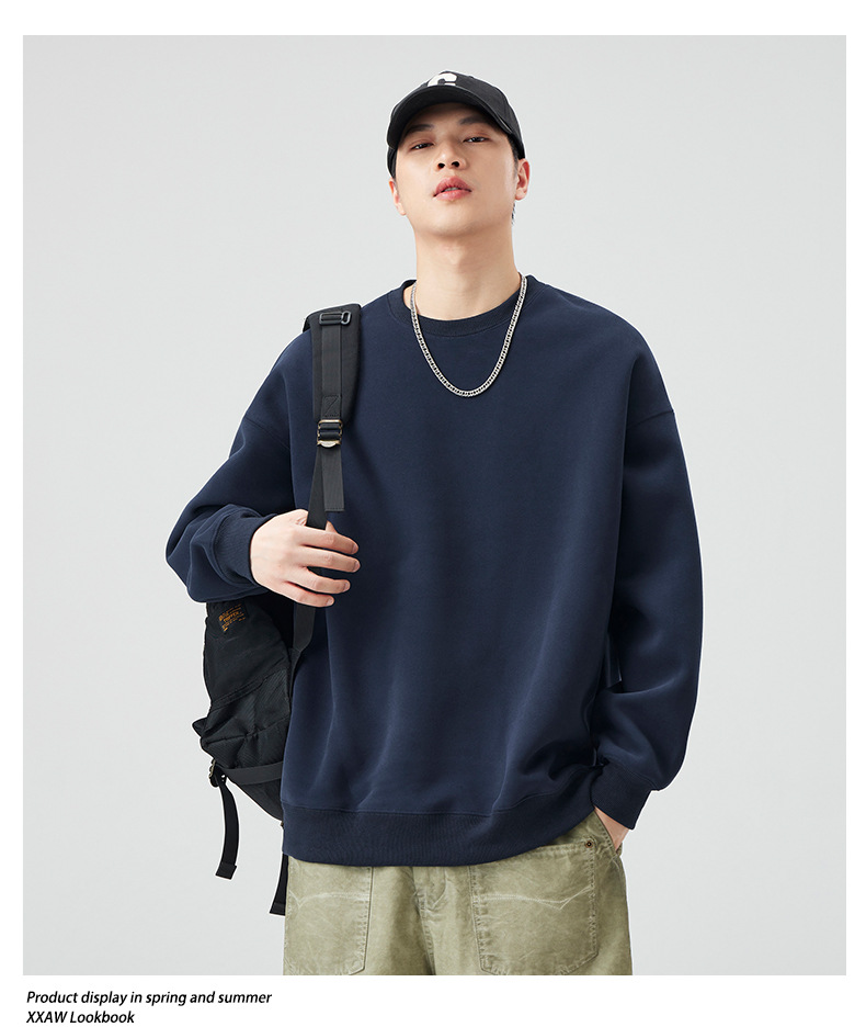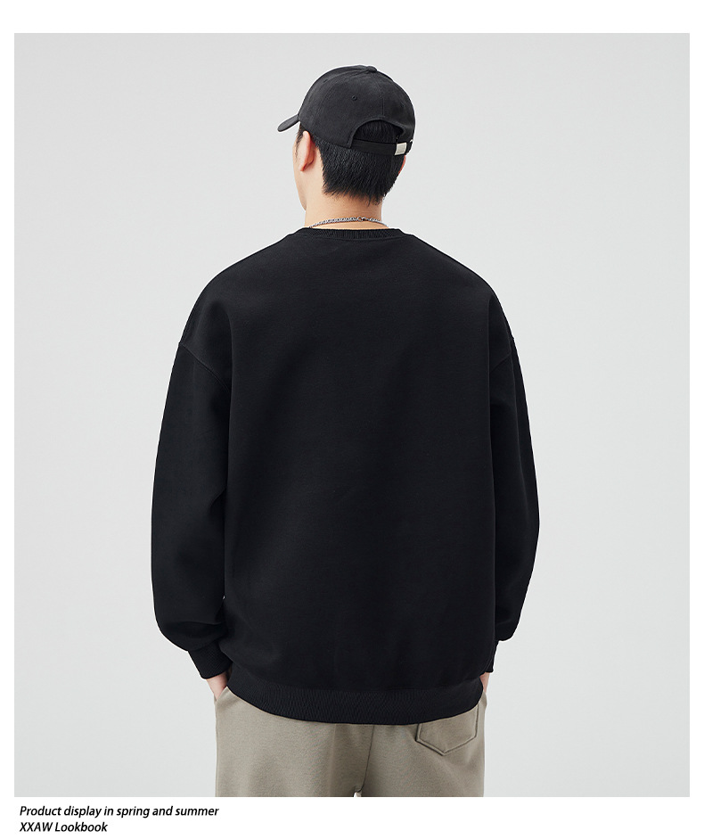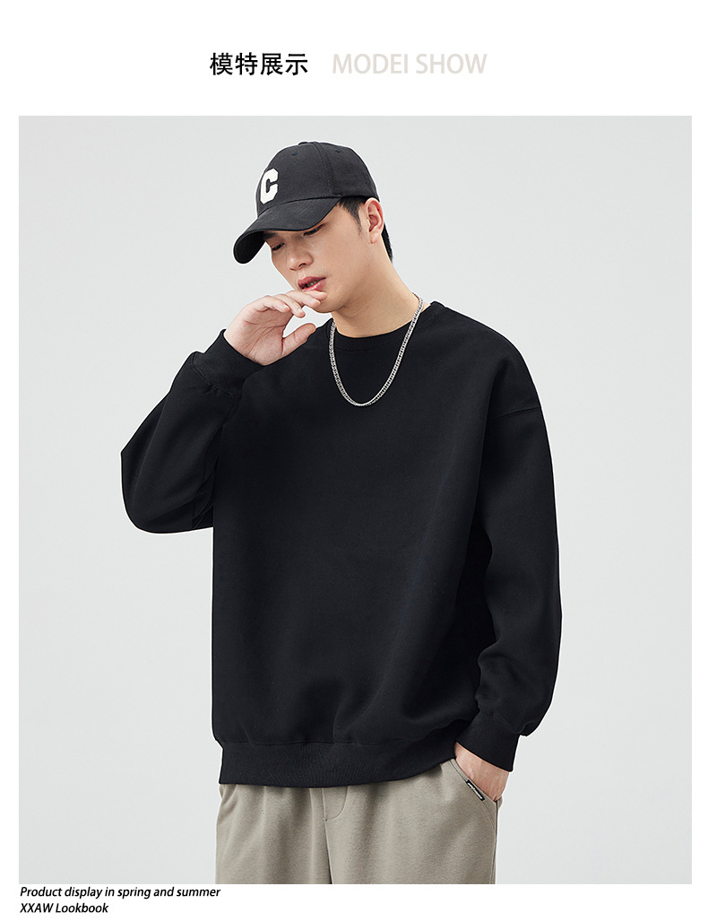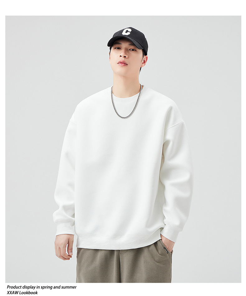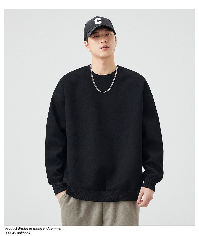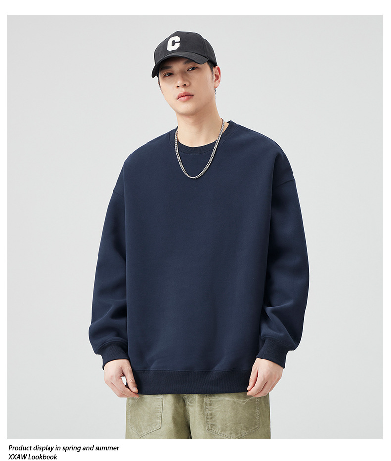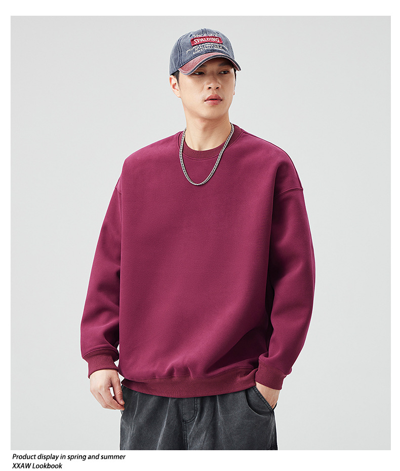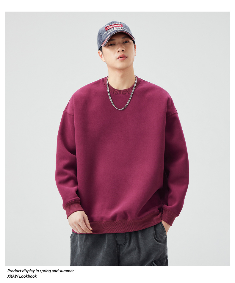 Muqiu 남성복 ∠ 405g 미국 헤비 솔리드 컬러 크루 넥 스웨트 남자와 여자의 느슨한 기모 베이스 재킷