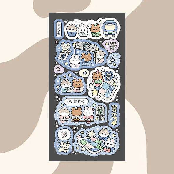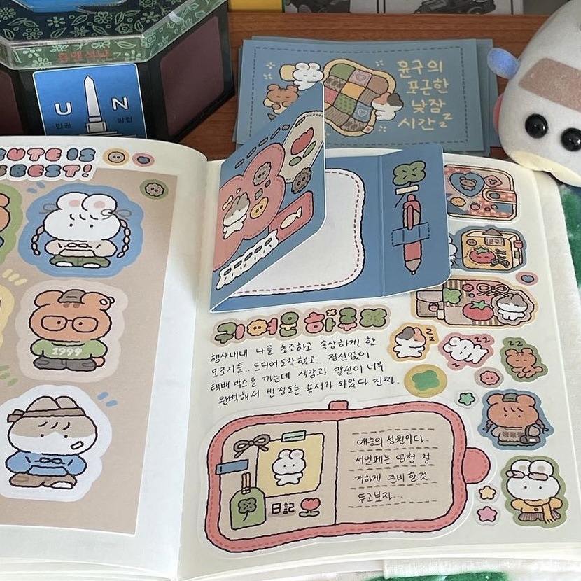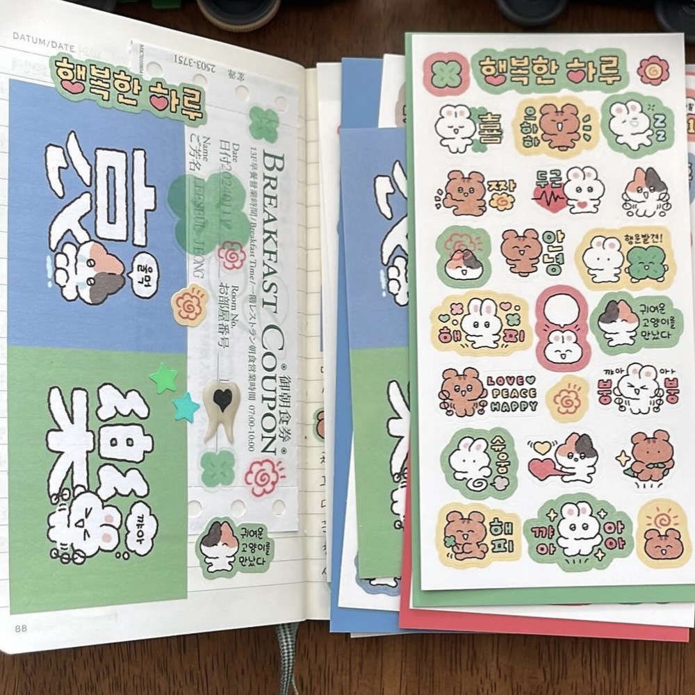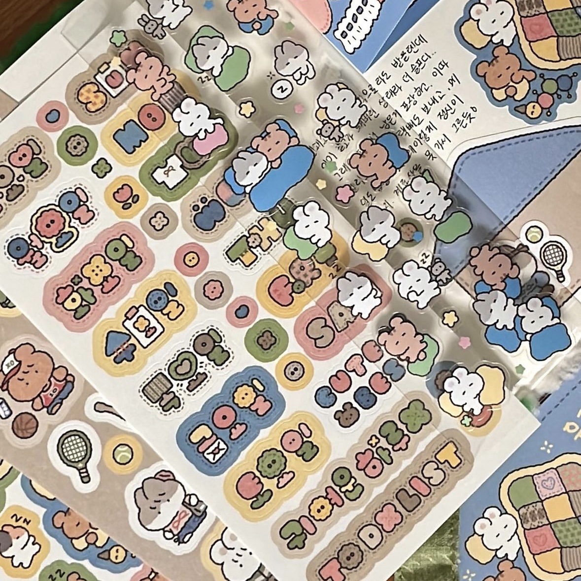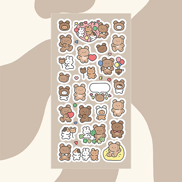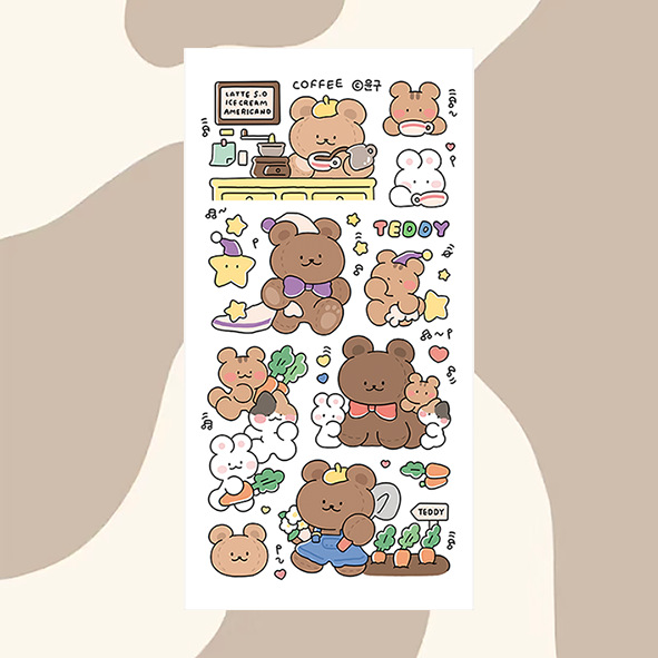 한국 귀여운 만화 낙서 테디 베어 토끼 스티커 구 카드 손 계정 DIY 창조적 인 스티커 도매스토어 가기