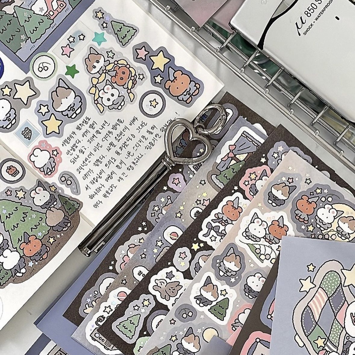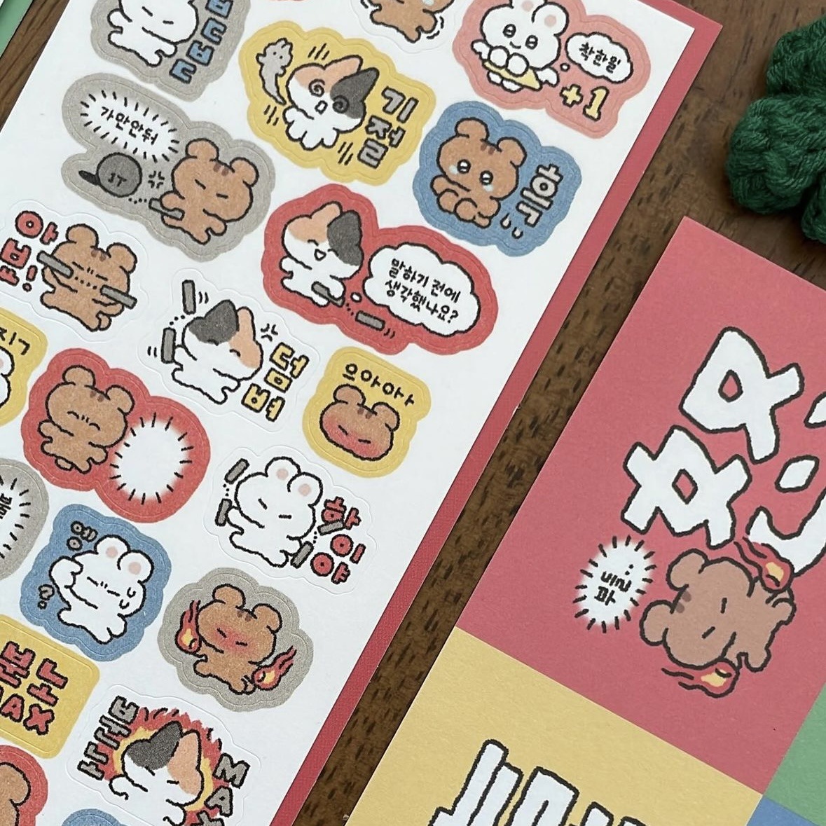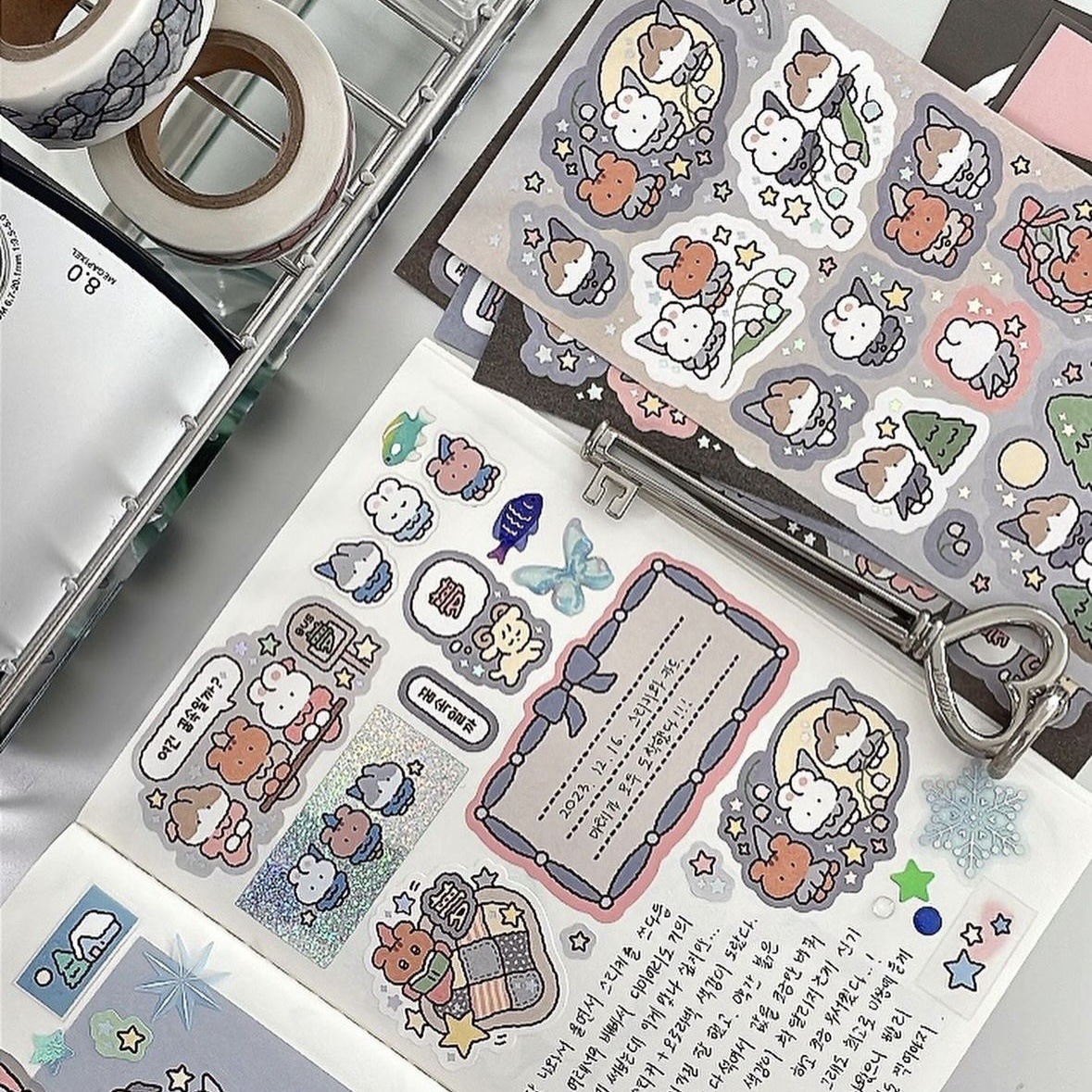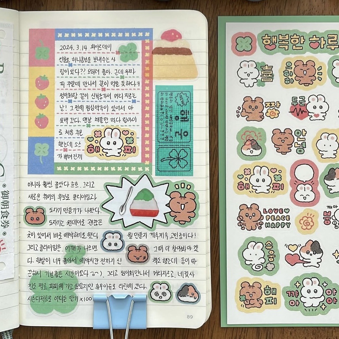 한국 귀여운 만화 낙서 테디 베어 토끼 스티커 구 카드 손 계정 DIY 창조적 인 스티커 도매스토어 가기