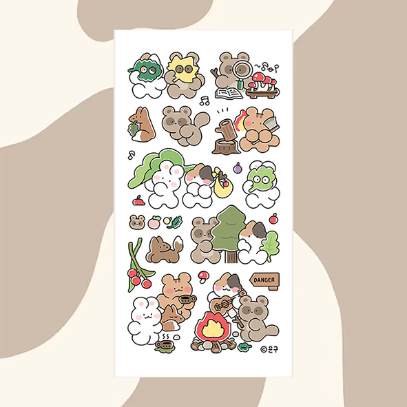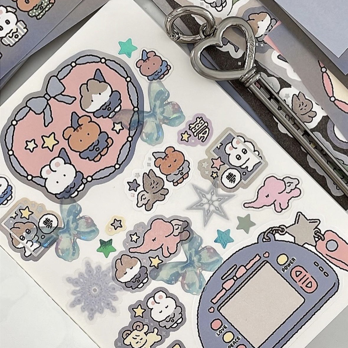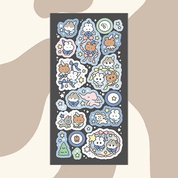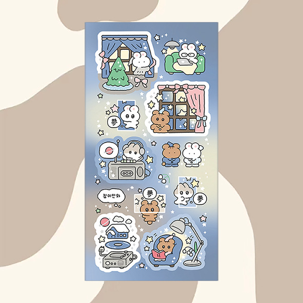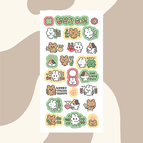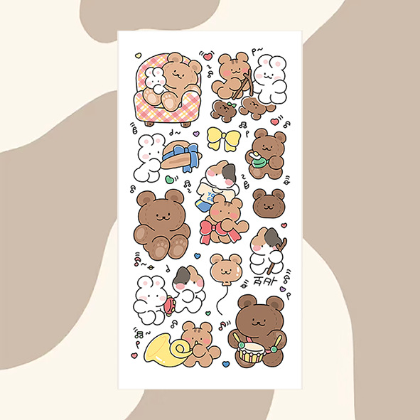 한국 귀여운 만화 낙서 테디 베어 토끼 스티커 구 카드 손 계정 DIY 창조적 인 스티커 도매