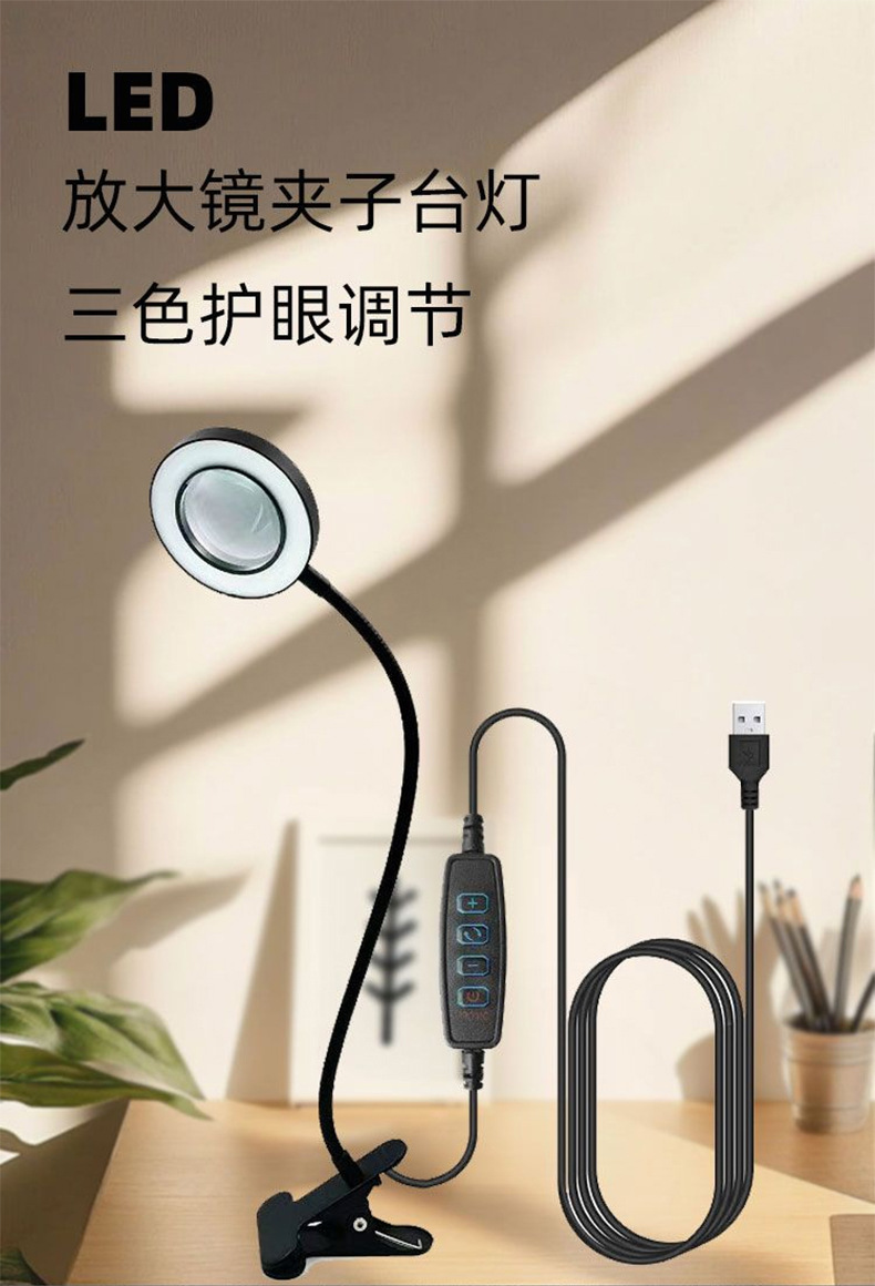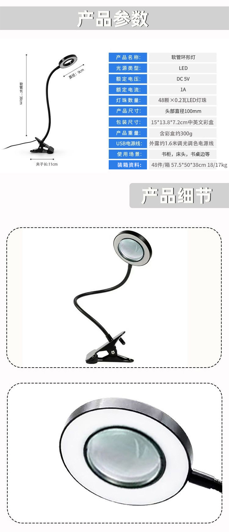 20배 LED 확대경 테이블 램프 학생용 독서용 네일 아트 문신 눈썹 셀카 보조 조명 이중 렌즈 강한 빛