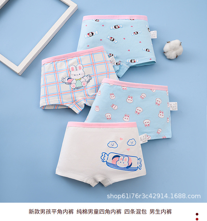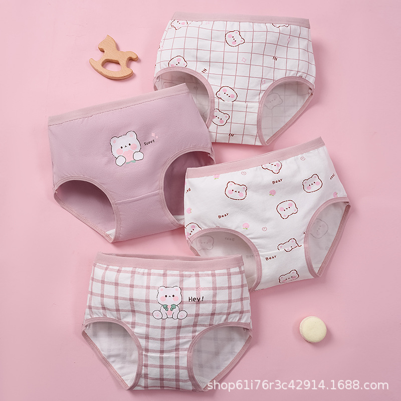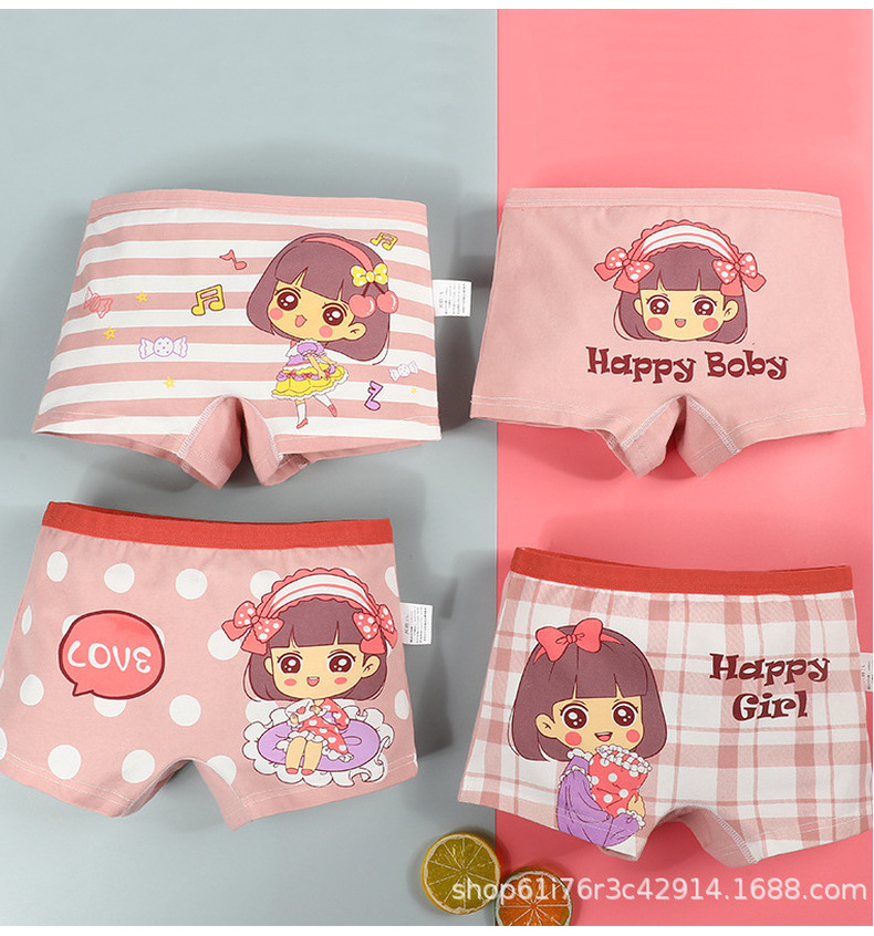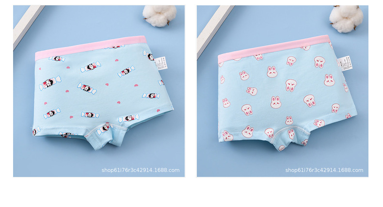 국제 무역 아동용 면 사각 팬티, 큰 흰색 무늬, 여아용 순면 A급 학생 사각 팬티스토어 가기