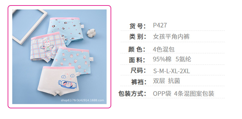 국제 무역 아동용 면 사각 팬티, 큰 흰색 무늬, 여아용 순면 A급 학생 사각 팬티
