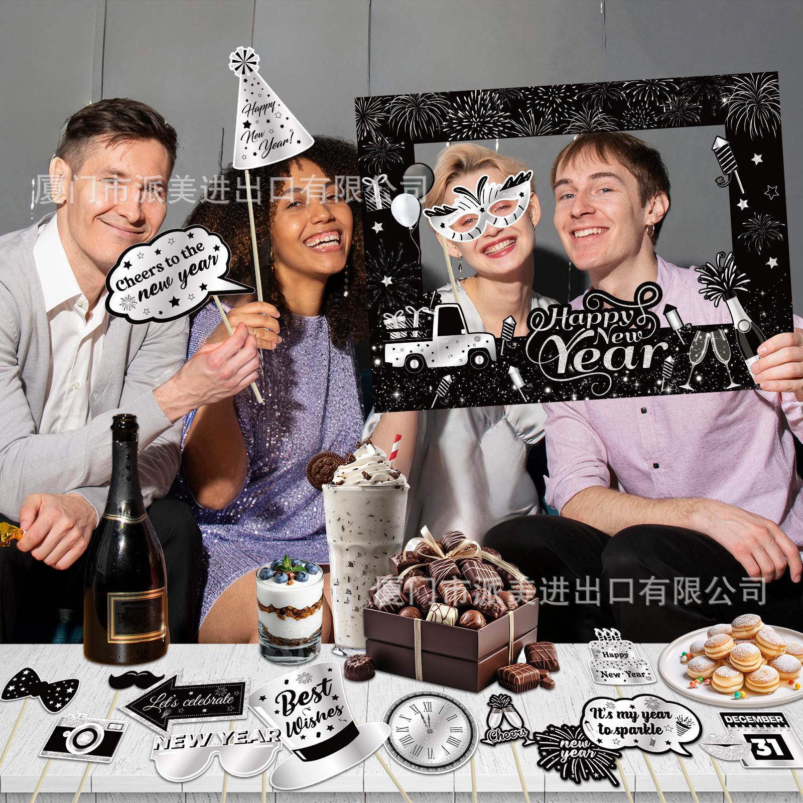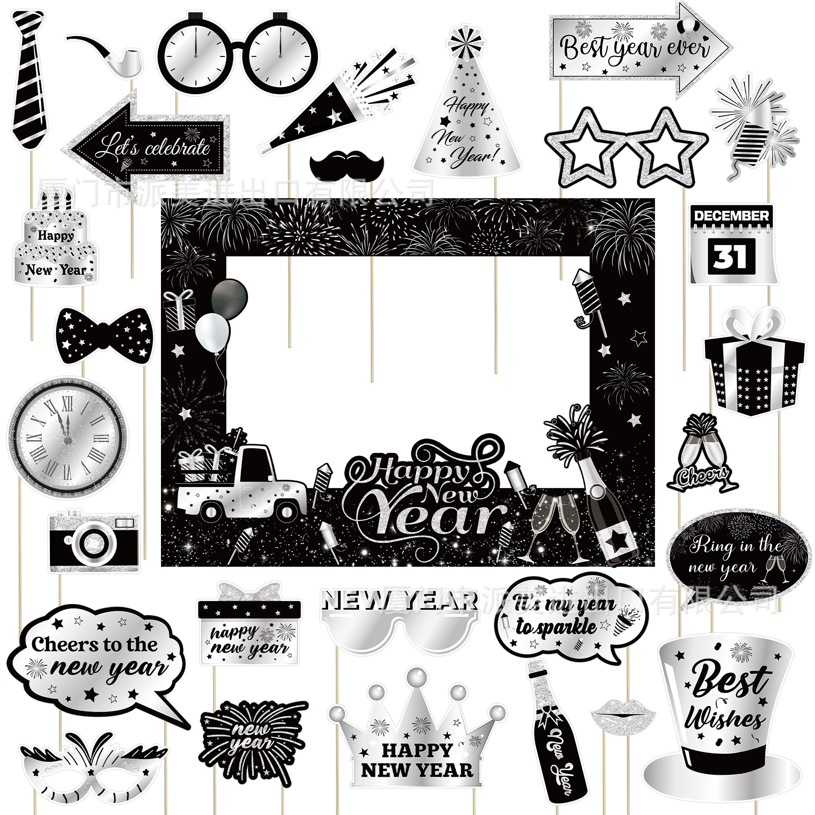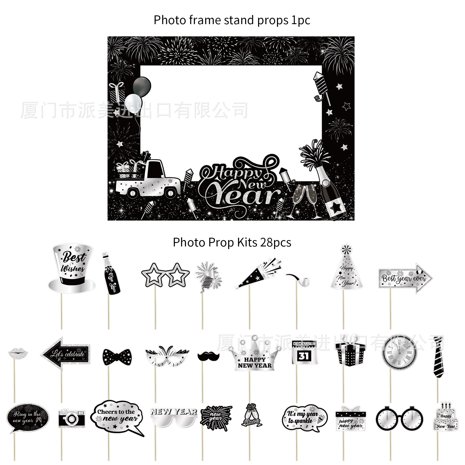 套装6包括:1个拍照相框(300克白卡纸,单面印刷,覆膜)+28个拍照道具