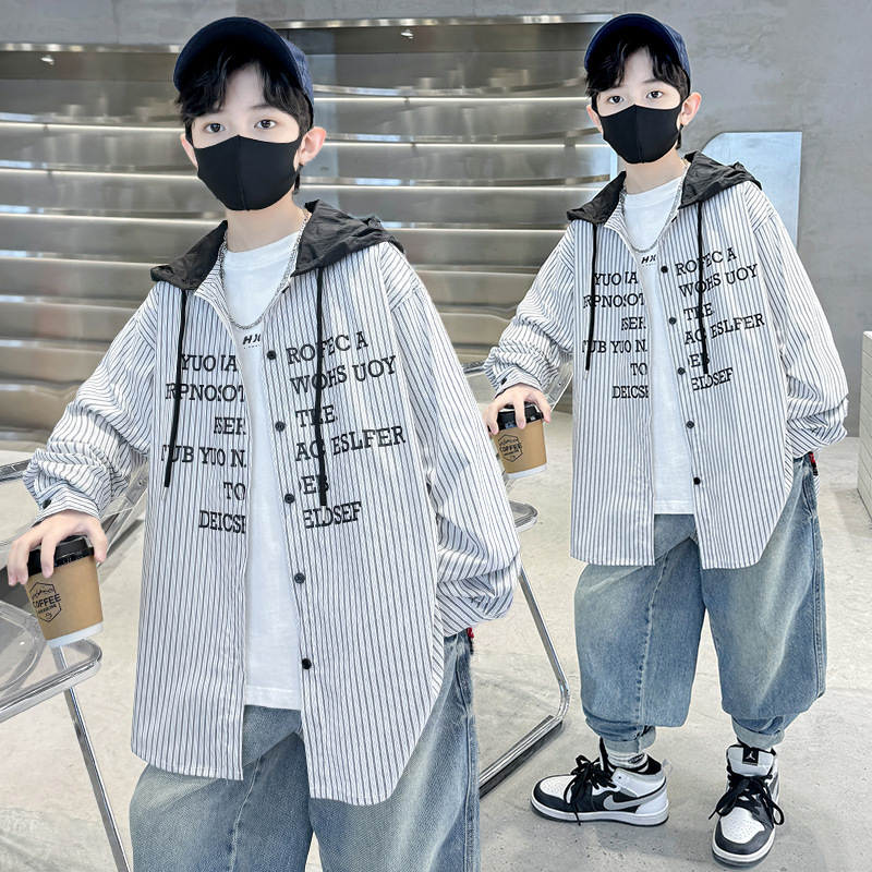 어린이 의류 소년 가을 셔츠 2024 새로운 봄과 가을 긴 소매 소년 가을 코트 트렌디 셔츠스토어 가기