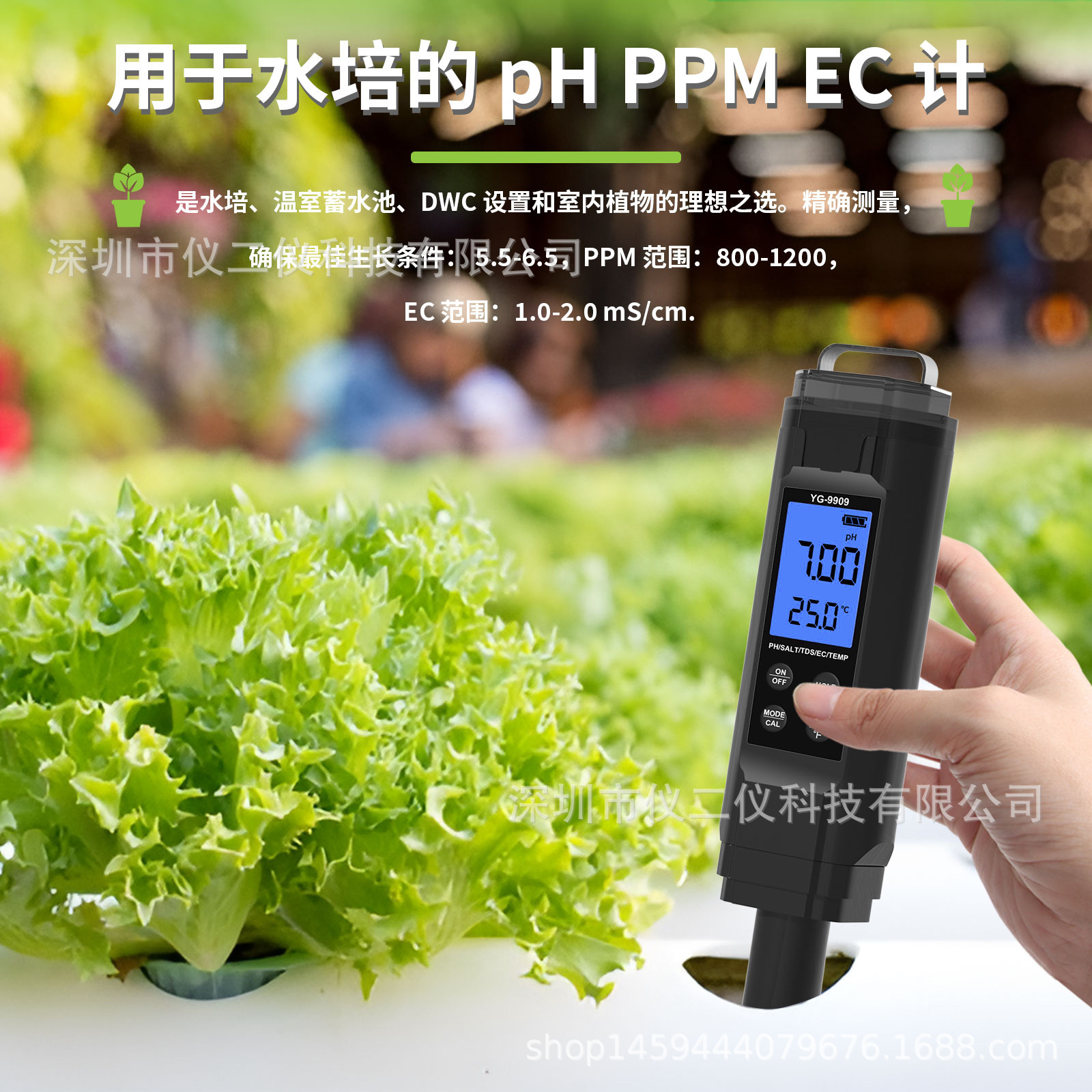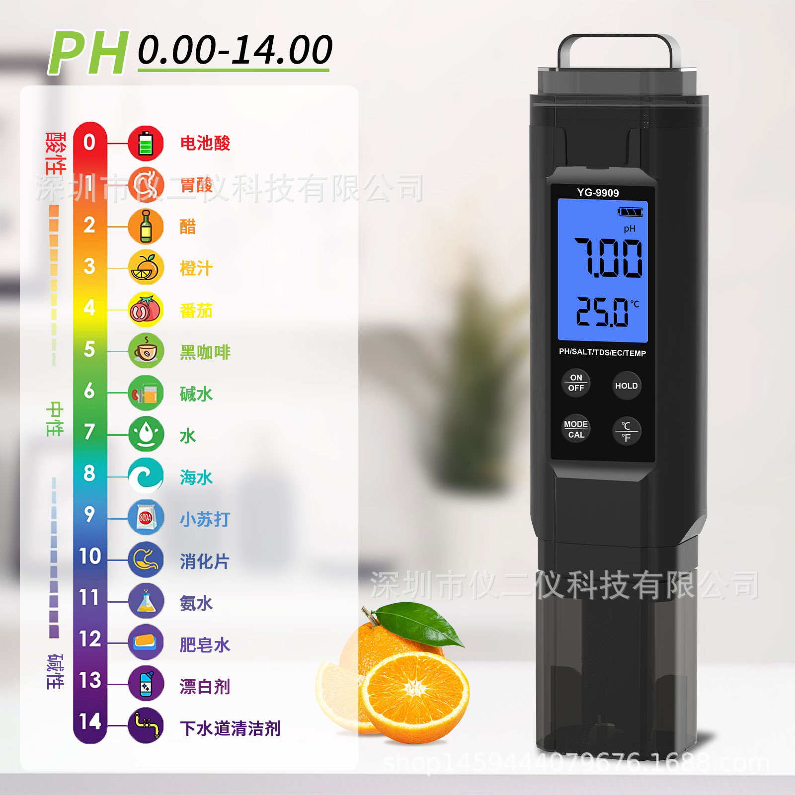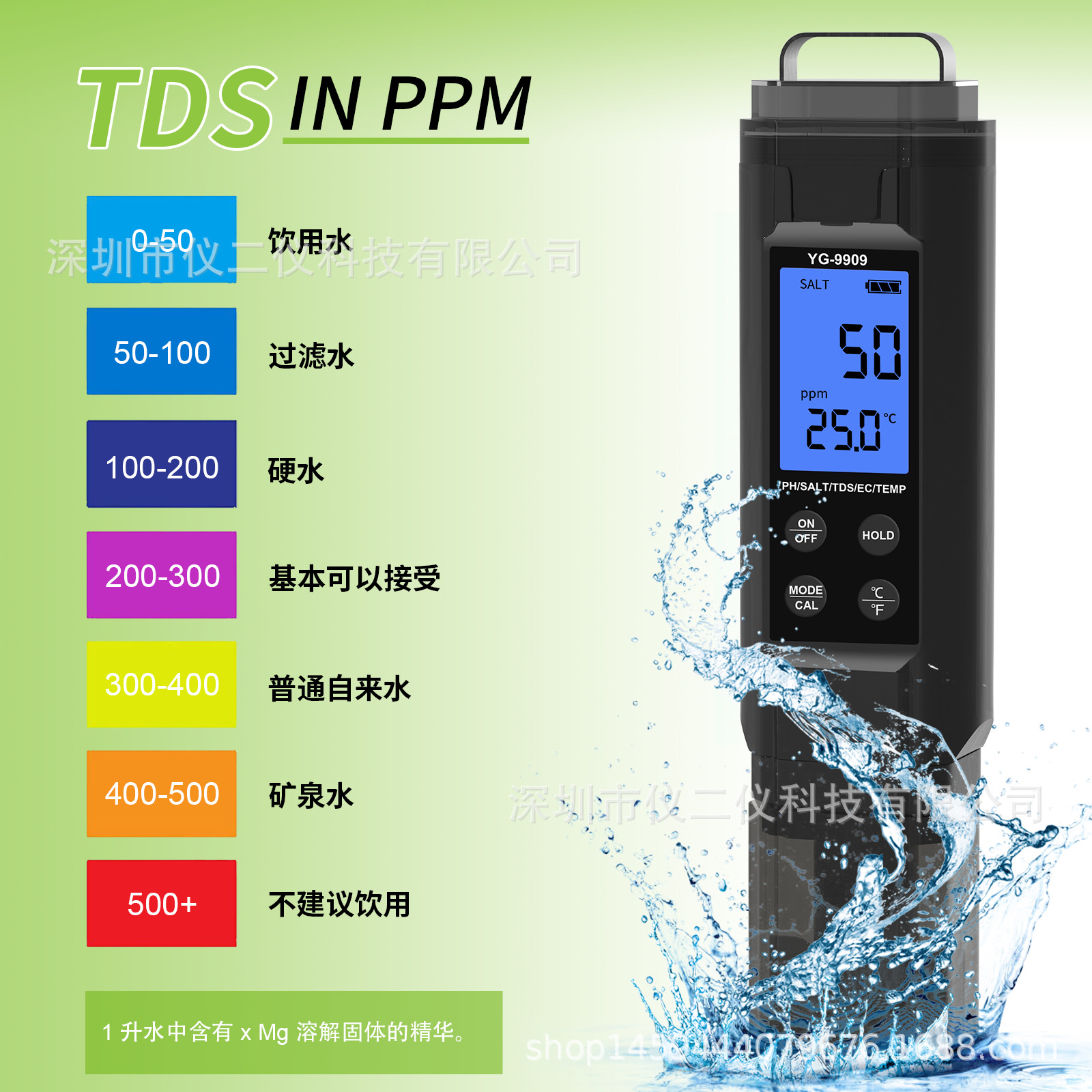 새로운 9909 수질 펜 수질 시험 펜 5-in -1 물고기 탱크 PH 미터 수경 EC 미터 사육 염분 미터