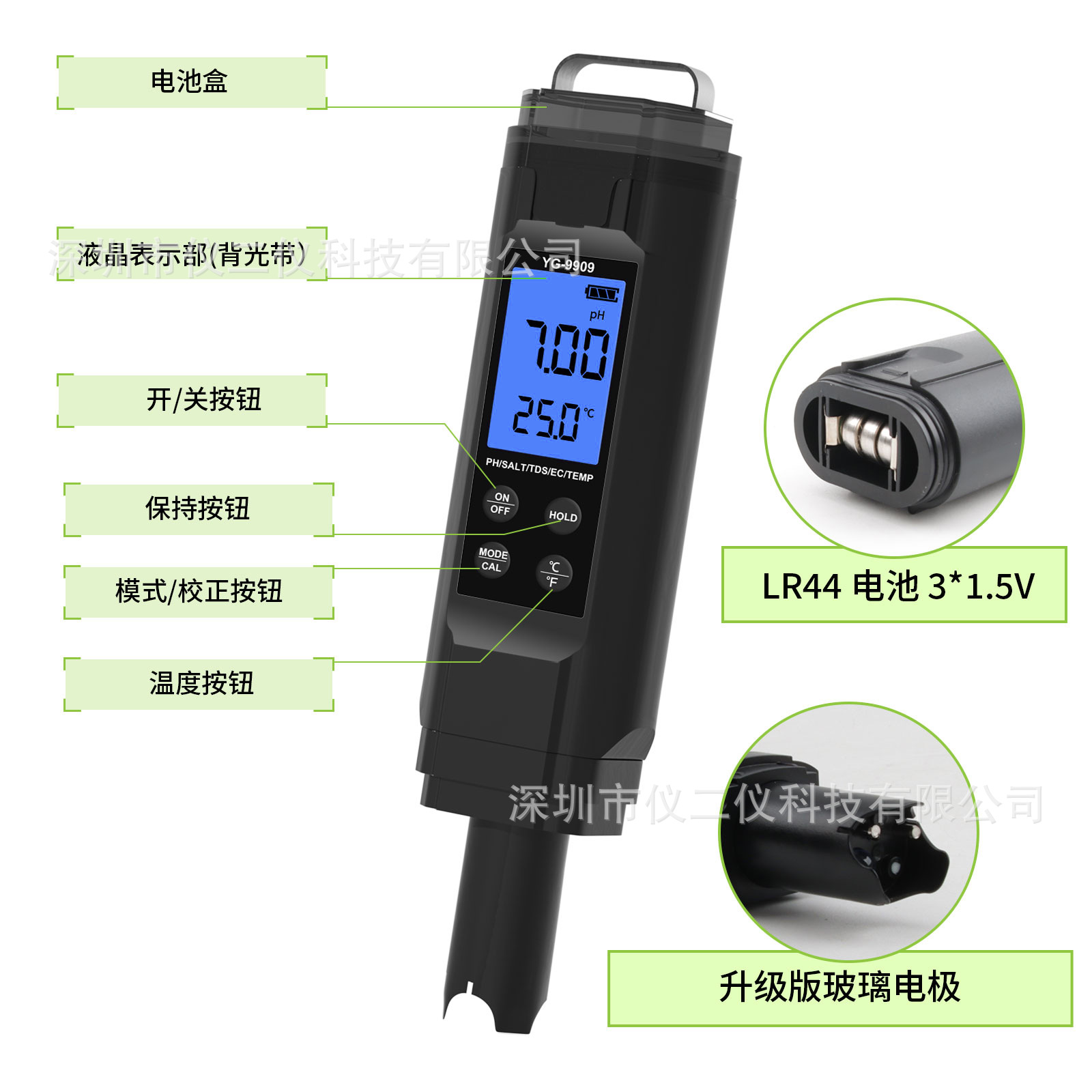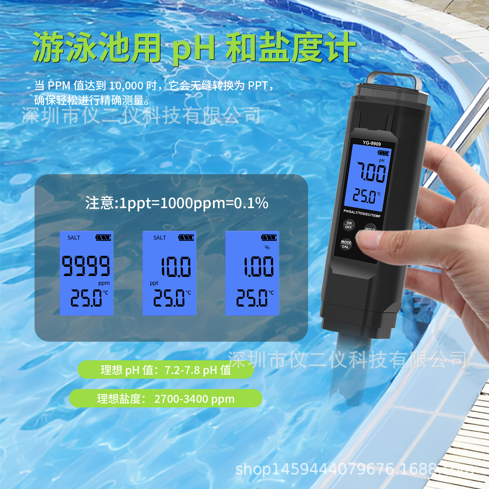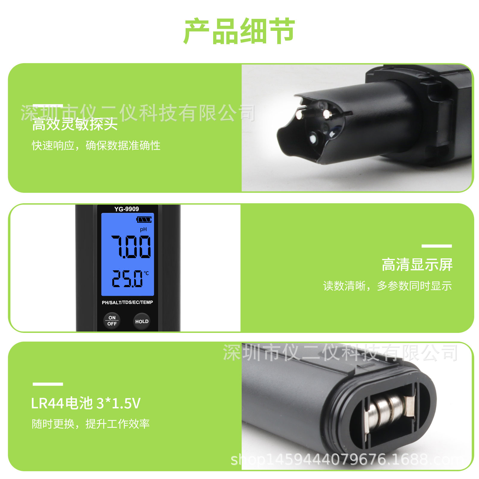 새로운 9909 수질 펜 수질 시험 펜 5-in -1 물고기 탱크 PH 미터 수경 EC 미터 사육 염분 미터