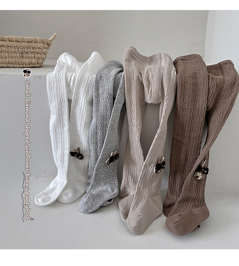 2024 가을 새로운 어린이 바지 소녀 레깅스 봄과 가을면 나무-귀 바지 작은 다이아몬드 해바라기 토끼 팬티 스타킹스토어 가기