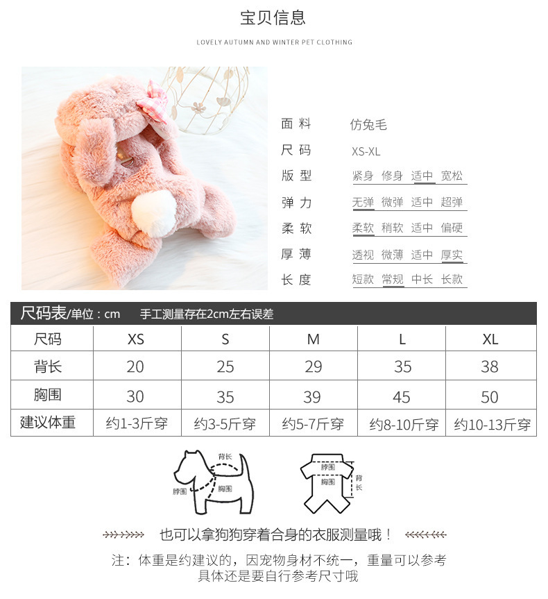 개 옷 가을과 겨울 옷 네 다리 기모 두꺼운 면 패딩 옷 모방 토끼 모피 견인 작은 개 테디 애완 동물 5845