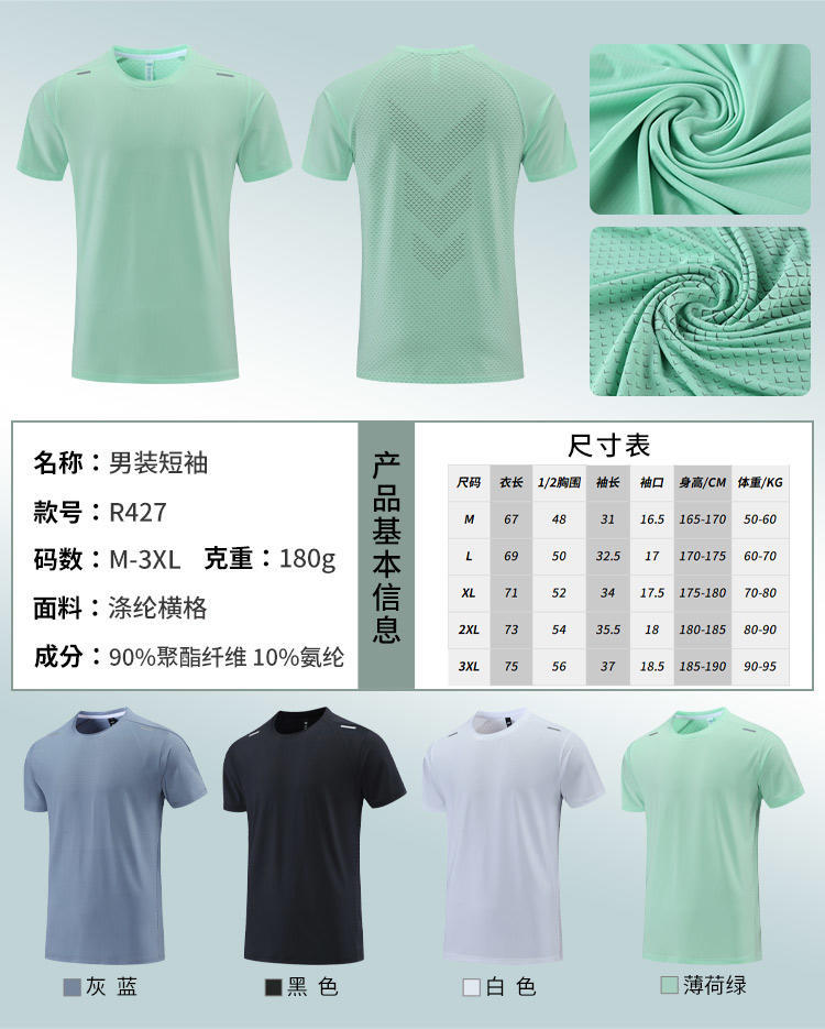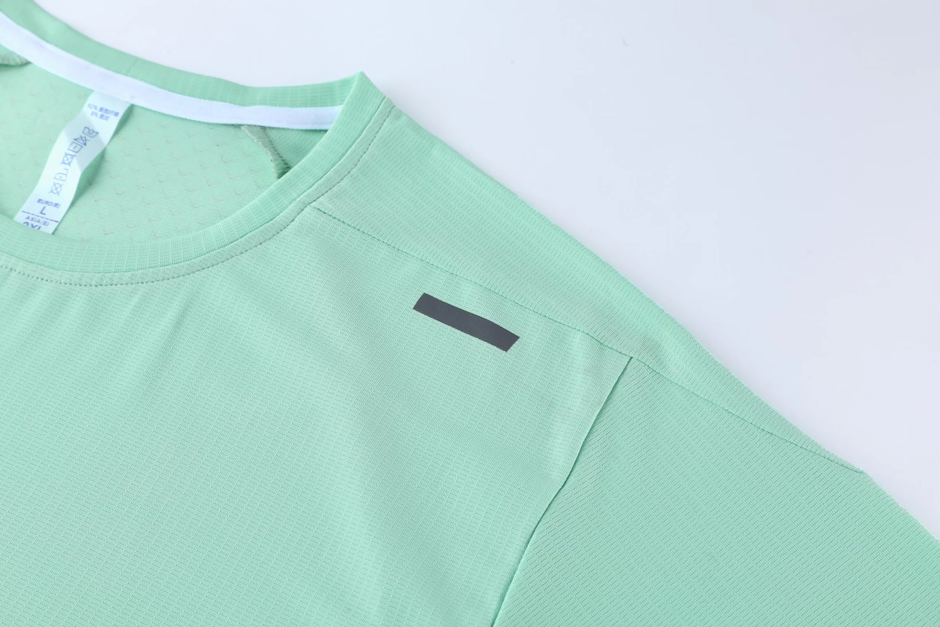 2024 새로운 180g 폴리 에스테르 수평 캐주얼 스포츠 빠른 건조 티셔츠 통기성 승무원 목 짧은 소매 재킷 로고 인쇄스토어 가기
