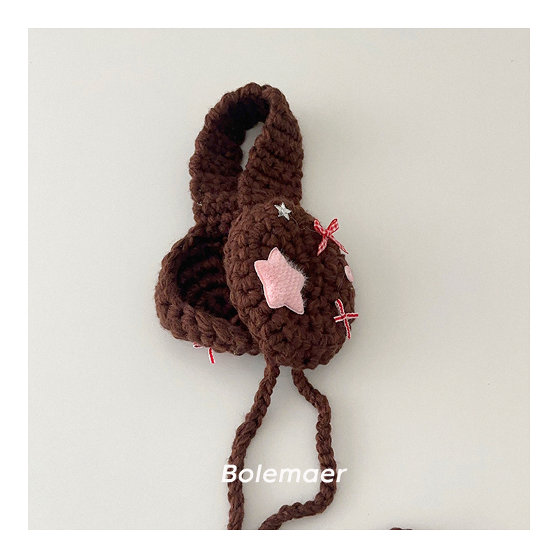 어린이 니트 헤어 밴드 따뜻한 귀마개 겨울 빈티지 컨캐브 스타일 단색 귀마개 레이스 업 울 귀마개 트렌디스토어 가기