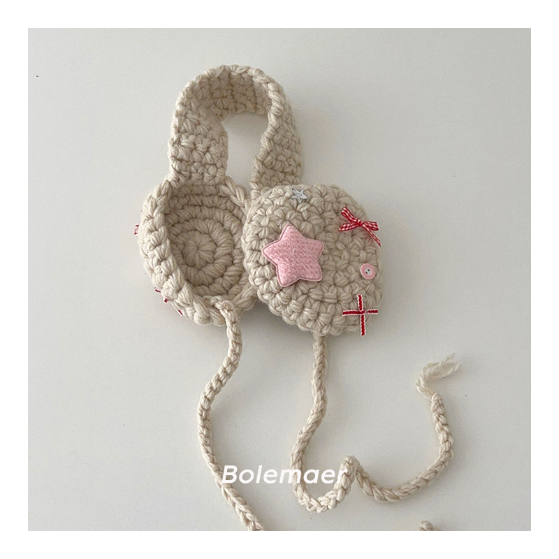 어린이 니트 헤어 밴드 따뜻한 귀마개 겨울 빈티지 컨캐브 스타일 단색 귀마개 레이스 업 울 귀마개 트렌디