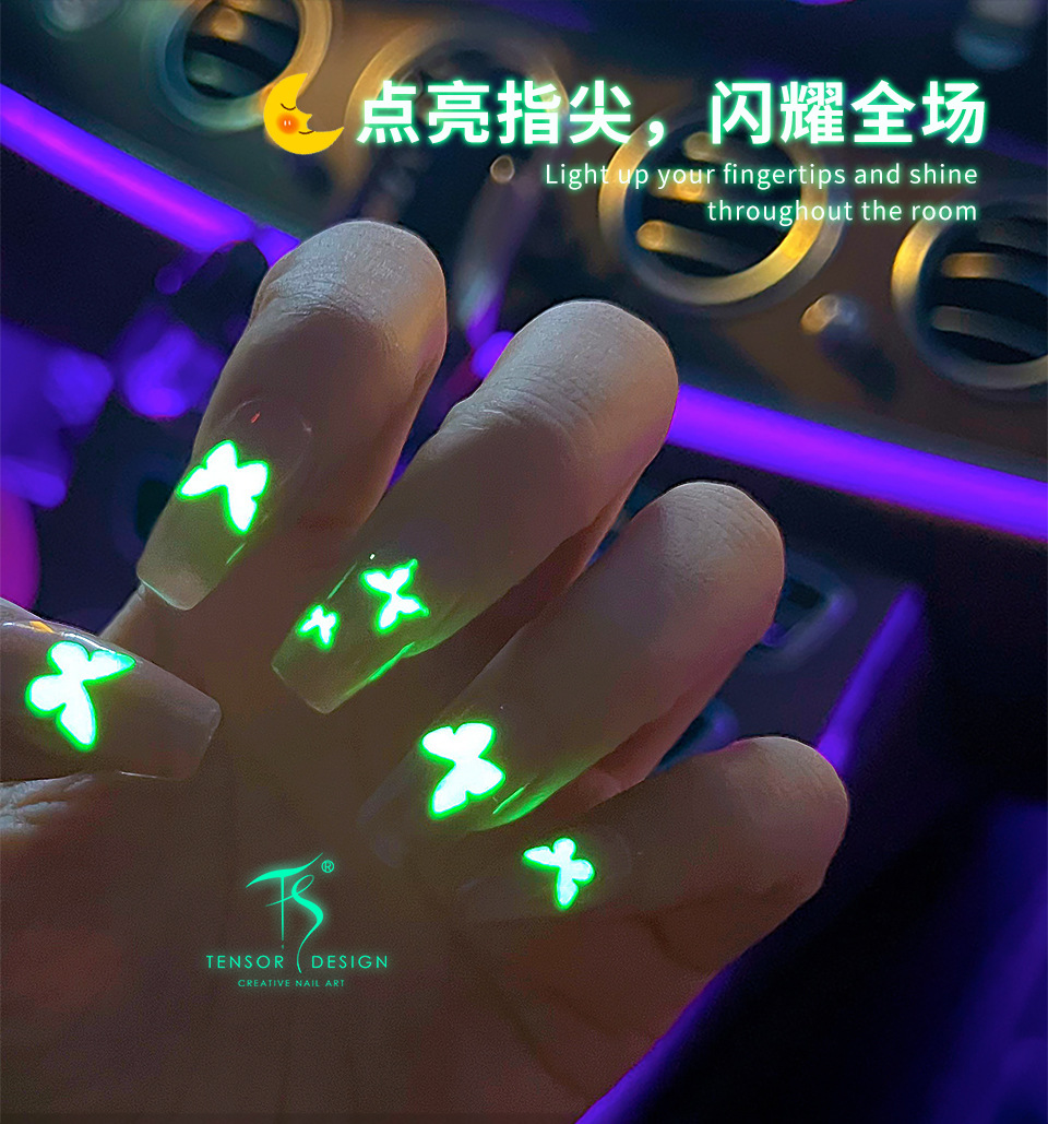 TENSOR 새로운 프로세스 5D 얇은 거친 네일 스티커 바람 젖빛 얇은 투명 접착제 발광 네일 스티커 TY003