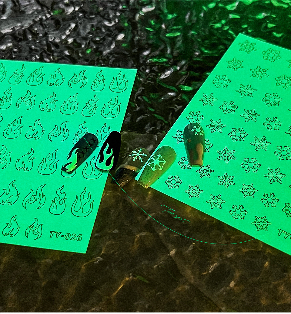 TENSOR 새로운 프로세스 5D 얇은 거친 네일 스티커 바람 서리 얇은 투명 접착제 발광 네일 스티커 TY-014스토어 가기