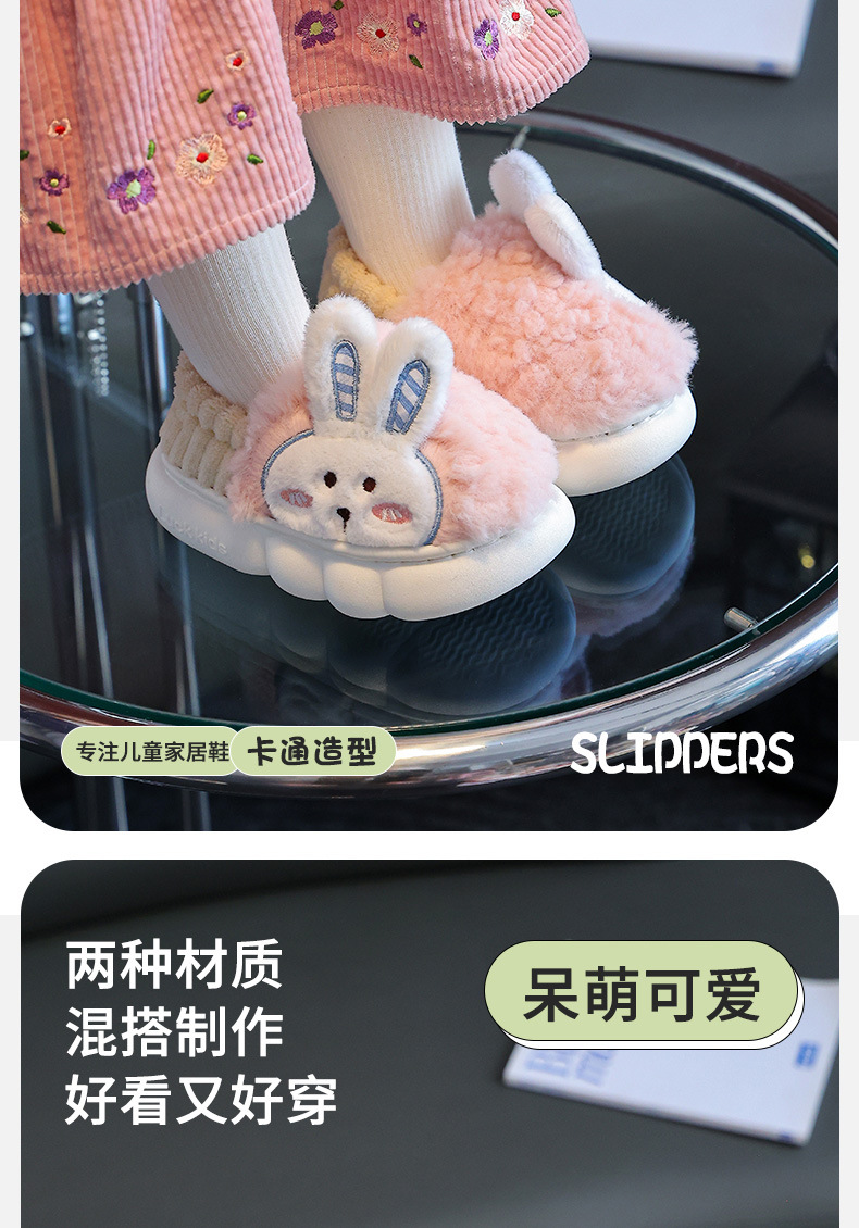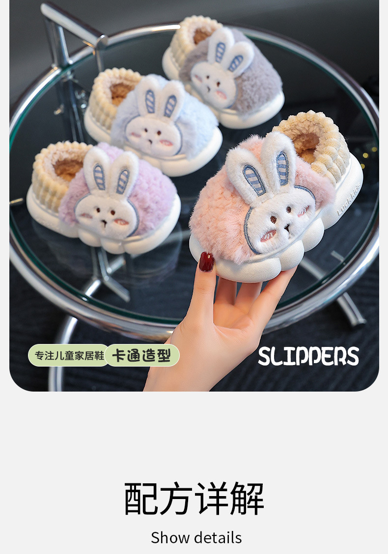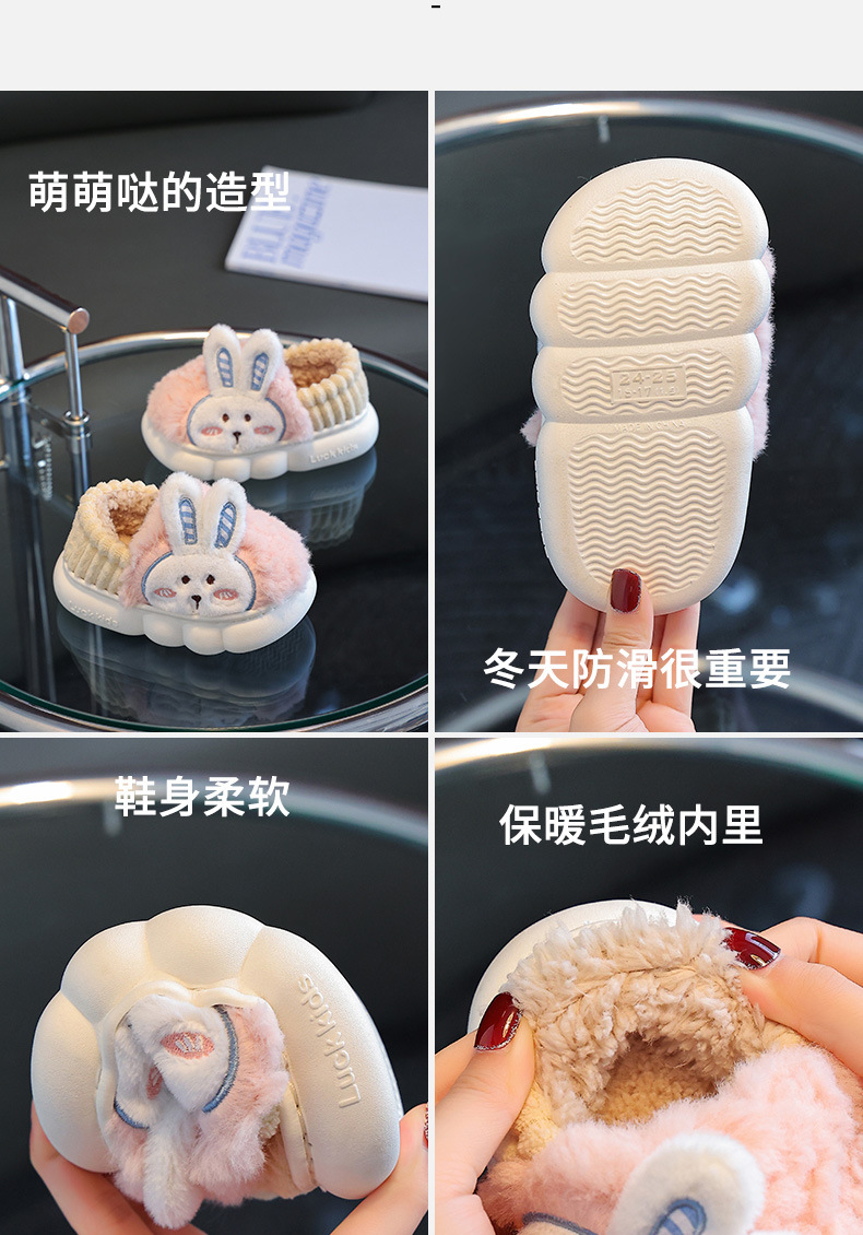 어린이 면화 슬리퍼 겨울 소녀 실내 따뜻한 미끄럼 방지 아기 홈 신발 가방 만화 토끼 소년 면화 신발스토어 가기