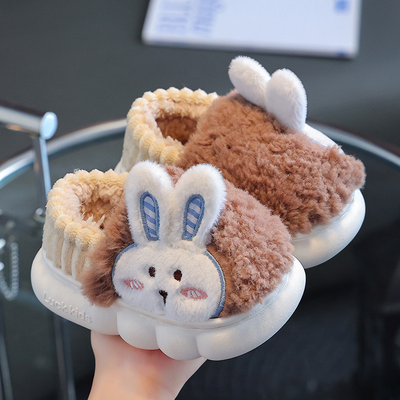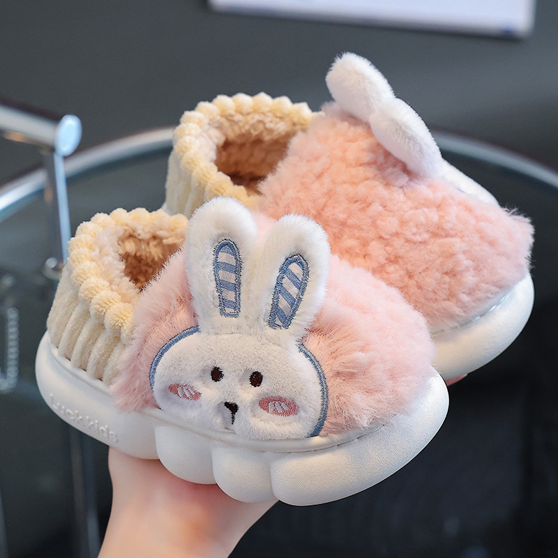 어린이 면화 슬리퍼 겨울 소녀 실내 따뜻한 미끄럼 방지 아기 홈 신발 가방 만화 토끼 소년 면화 신발
