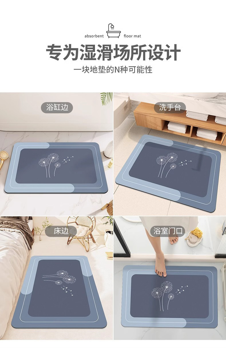 욕실 Diatom 진흙 빠른 건조 부드러운 바닥 매트 흡수성 화장실 문 미끄럼 방지 발 매트 화장실 문 매트 카펫 욕실