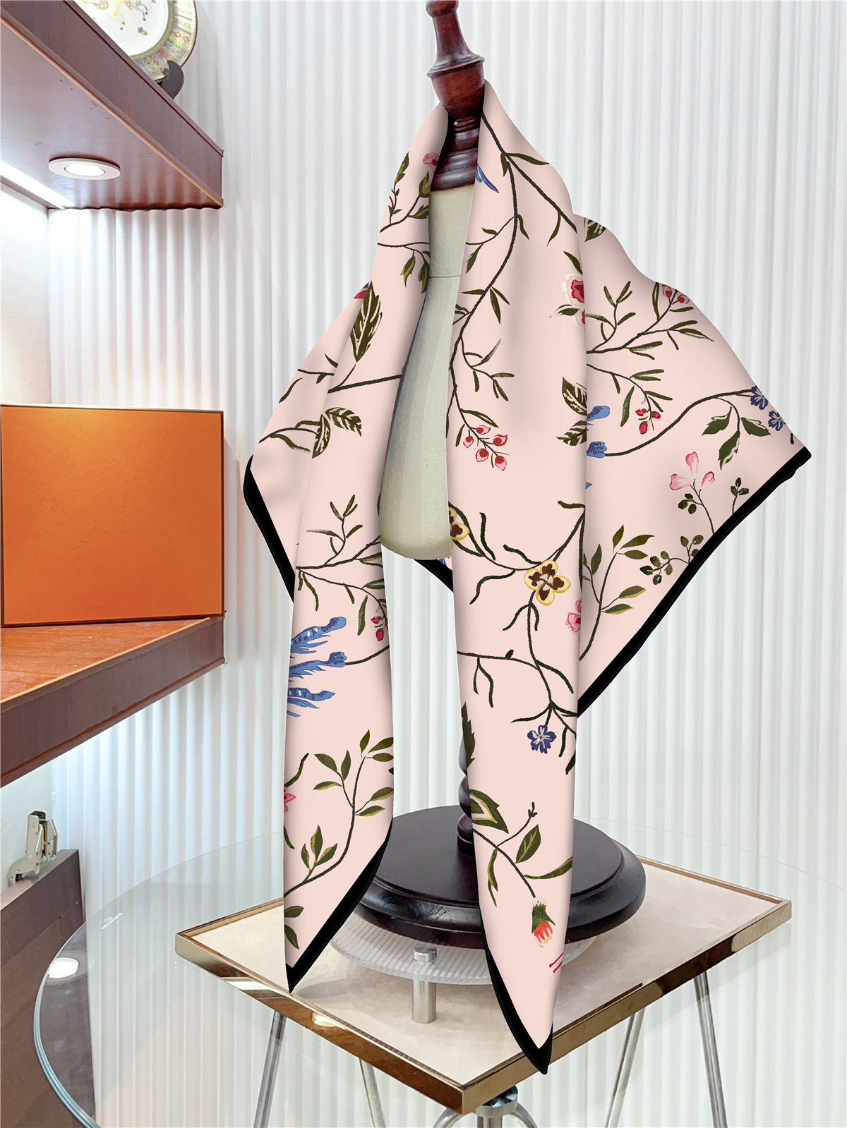 가을과 겨울 새로운 90 스퀘어 타월 수제 테이블 인쇄 직각 기계 컬링 실크 침투 인쇄 여성의 목도리 교차 테두리스토어 가기