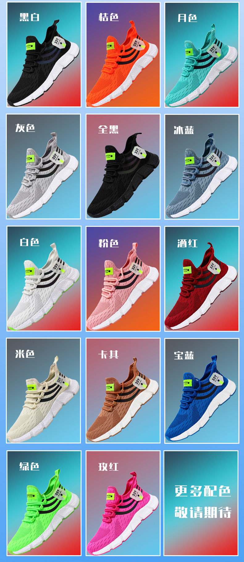 국경 간 플러스 사이즈 커플의 14 색 여름 비행 메쉬 통기성 운동화 팝콘 큰 단독 경량 달리기 신발
