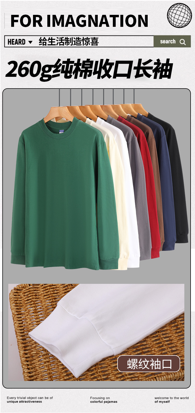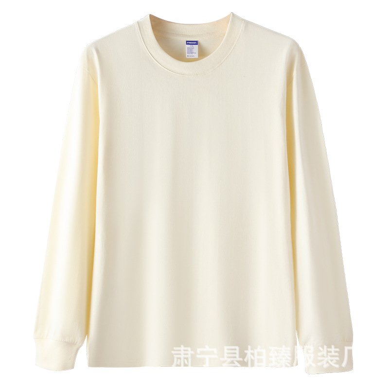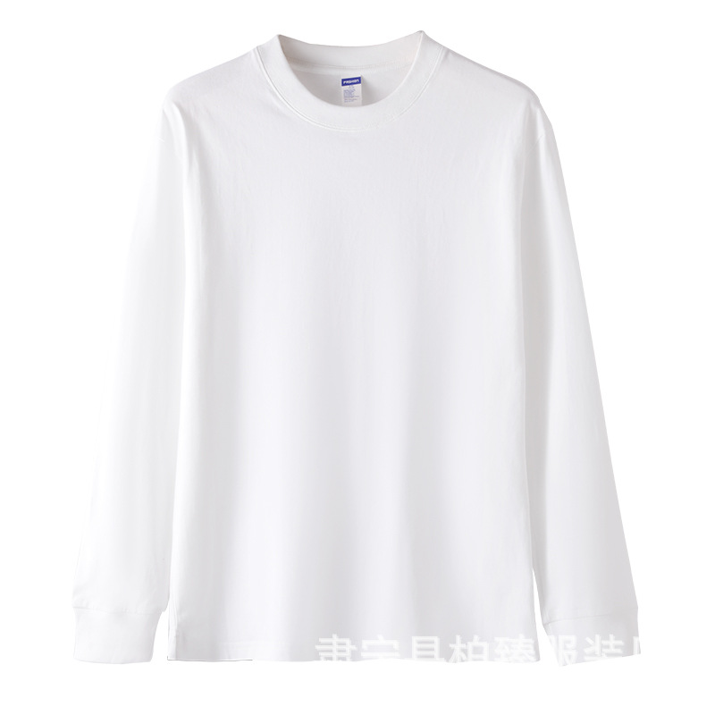 라이브 폭발 블록버스터 코튼 260g 스레드 긴 소매 티셔츠 둥근 목 바닥 흰색 티셔츠 여성 도매스토어 가기