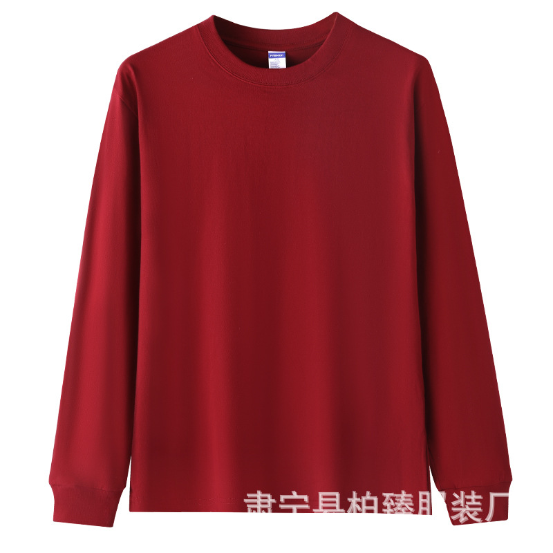 라이브 폭발 블록버스터 코튼 260g 스레드 긴 소매 티셔츠 둥근 목 바닥 흰색 티셔츠 여성 도매