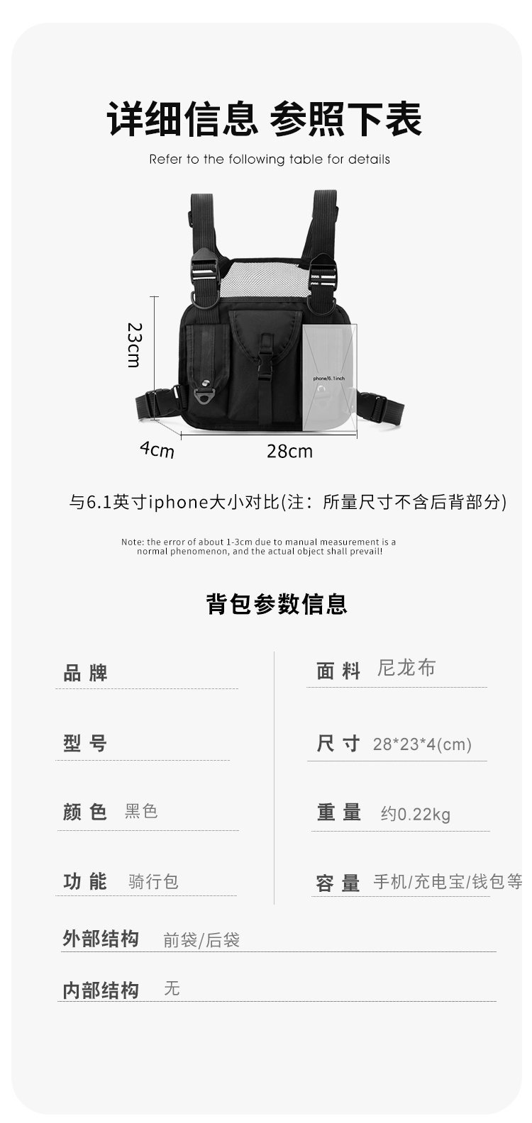 야외 등산 가방 경량 멀티 구획 전술 가방 스트리트 댄스 가방 새로운 조끼 가방 스포츠 배낭 가슴 가방