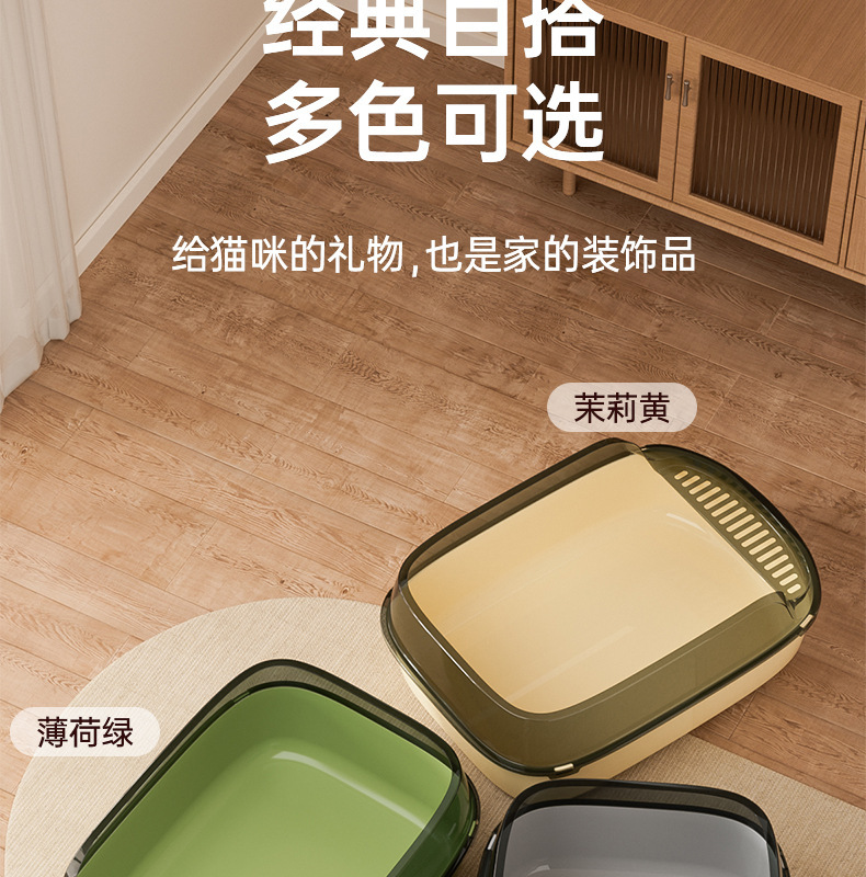 재고 도매 높은 울타리 반 닫힌 고양이 쓰레기 상자 두꺼운 고양이 화장실 고양이 쓰레기 삽 애완 동물 용품스토어 가기